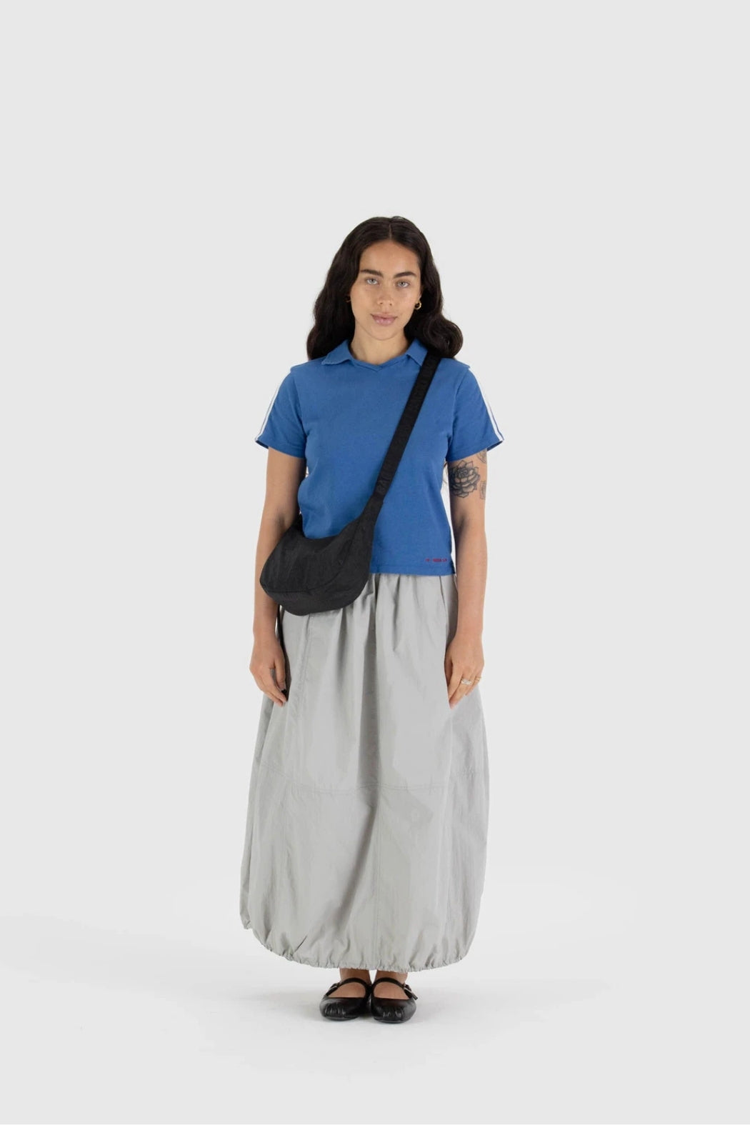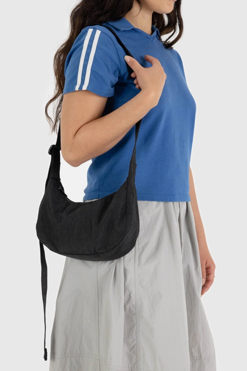The popular crescent shape bag by Baggu, in a smaller size that still fits what you need with room to spare.