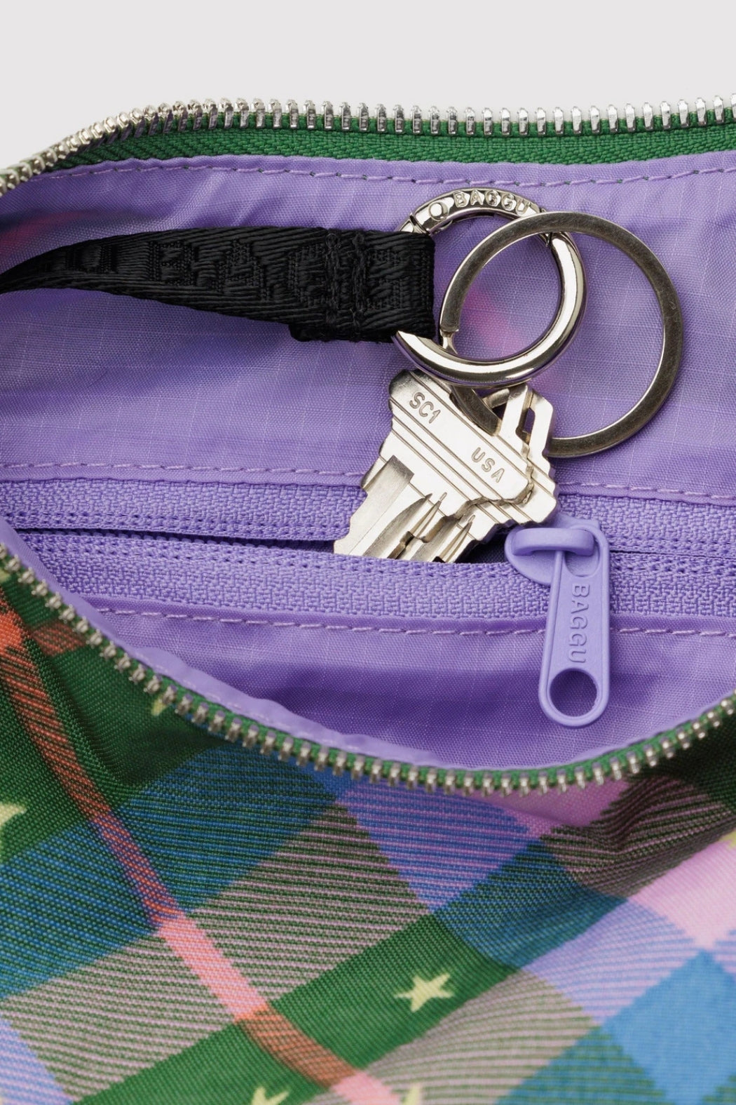 Baggu Small Nylon Crescent Bag Green Star Plaid