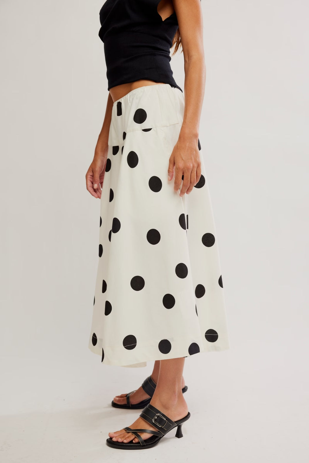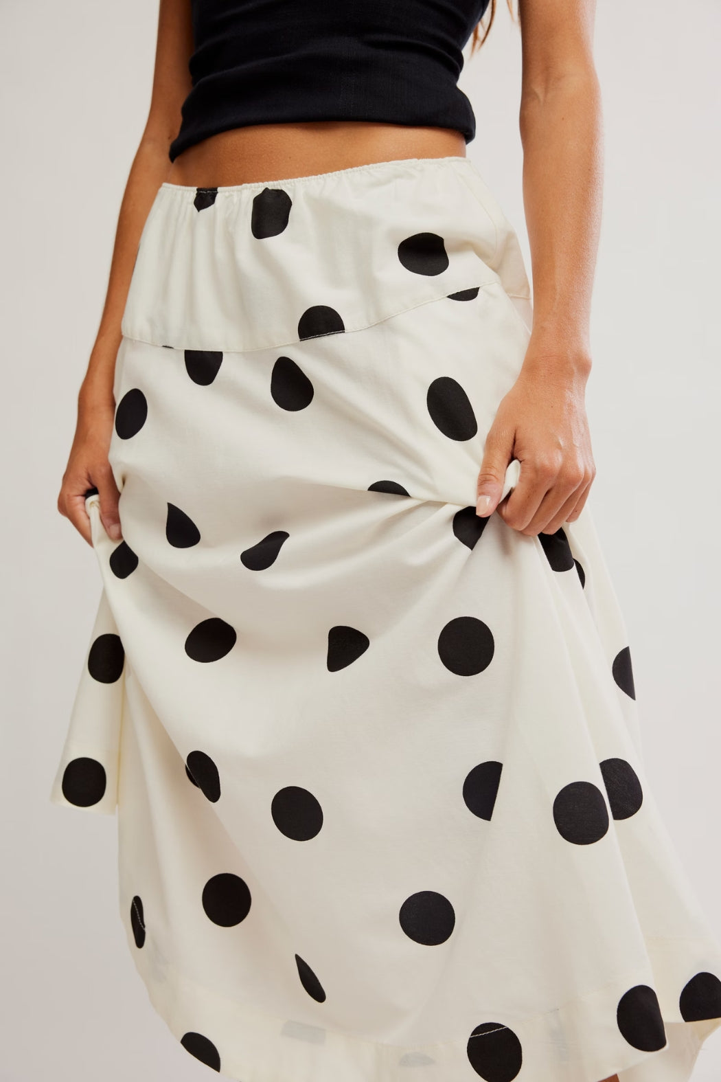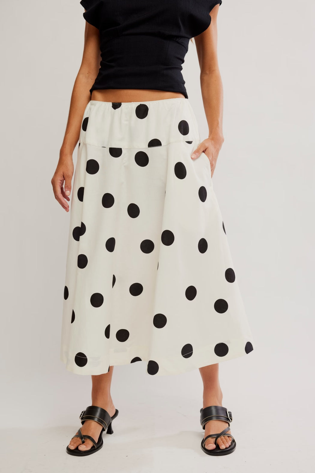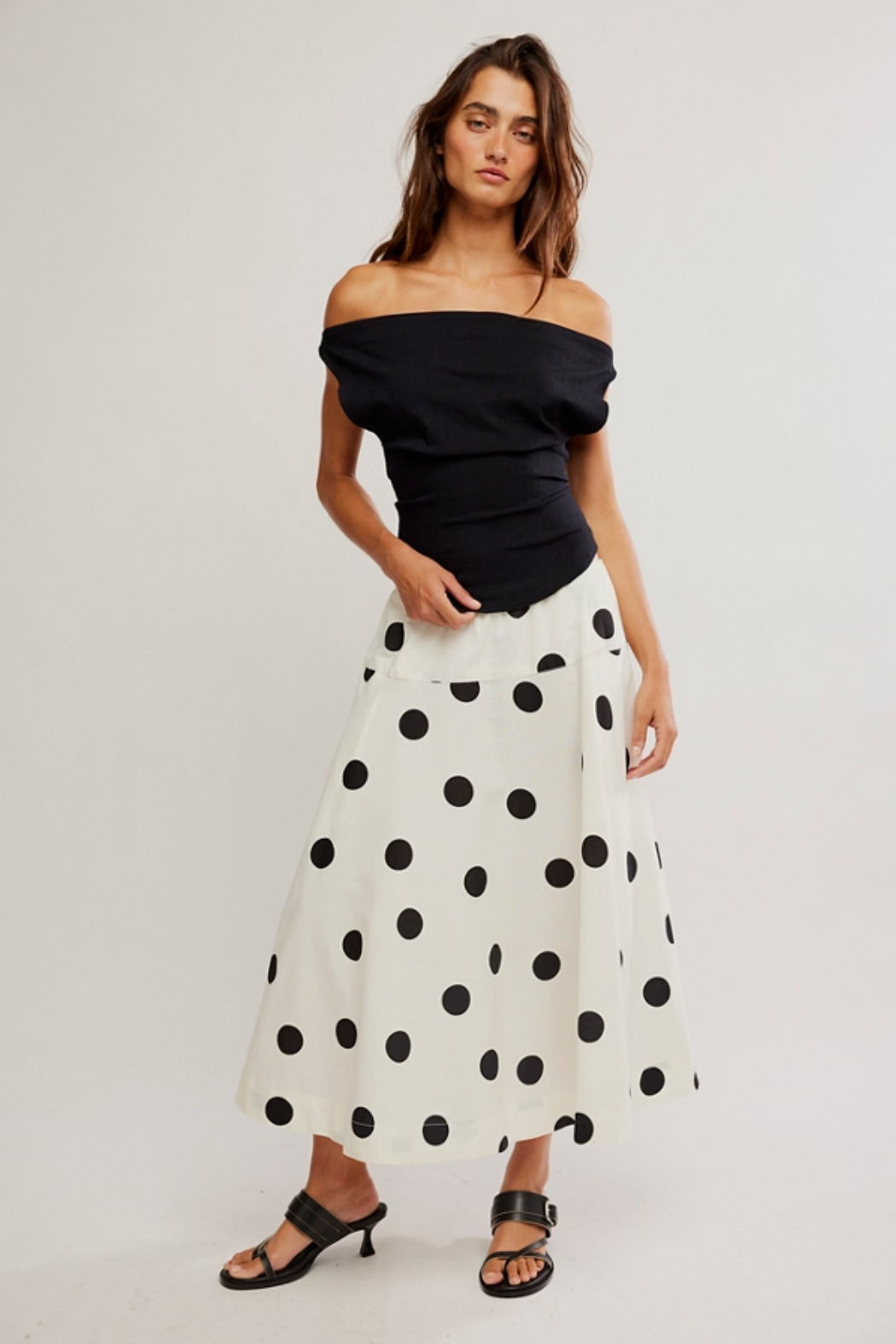 The Betty Drop Waist Skirt by Free People is both flattering and fun! The polka-dot brings a whimsical yet stylish take on a classic silhouette. Pair with a black blouse for a sophisticated look, or pair with a bold color for a more vibrant style. This skirt has endless chic pairings!