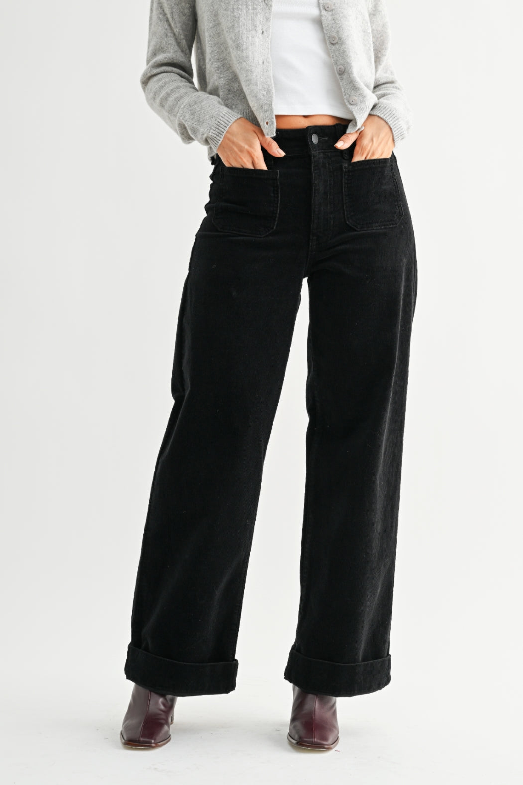 Just Black Denim Corduroy Mini Patch Pocket Wide Leg - Black