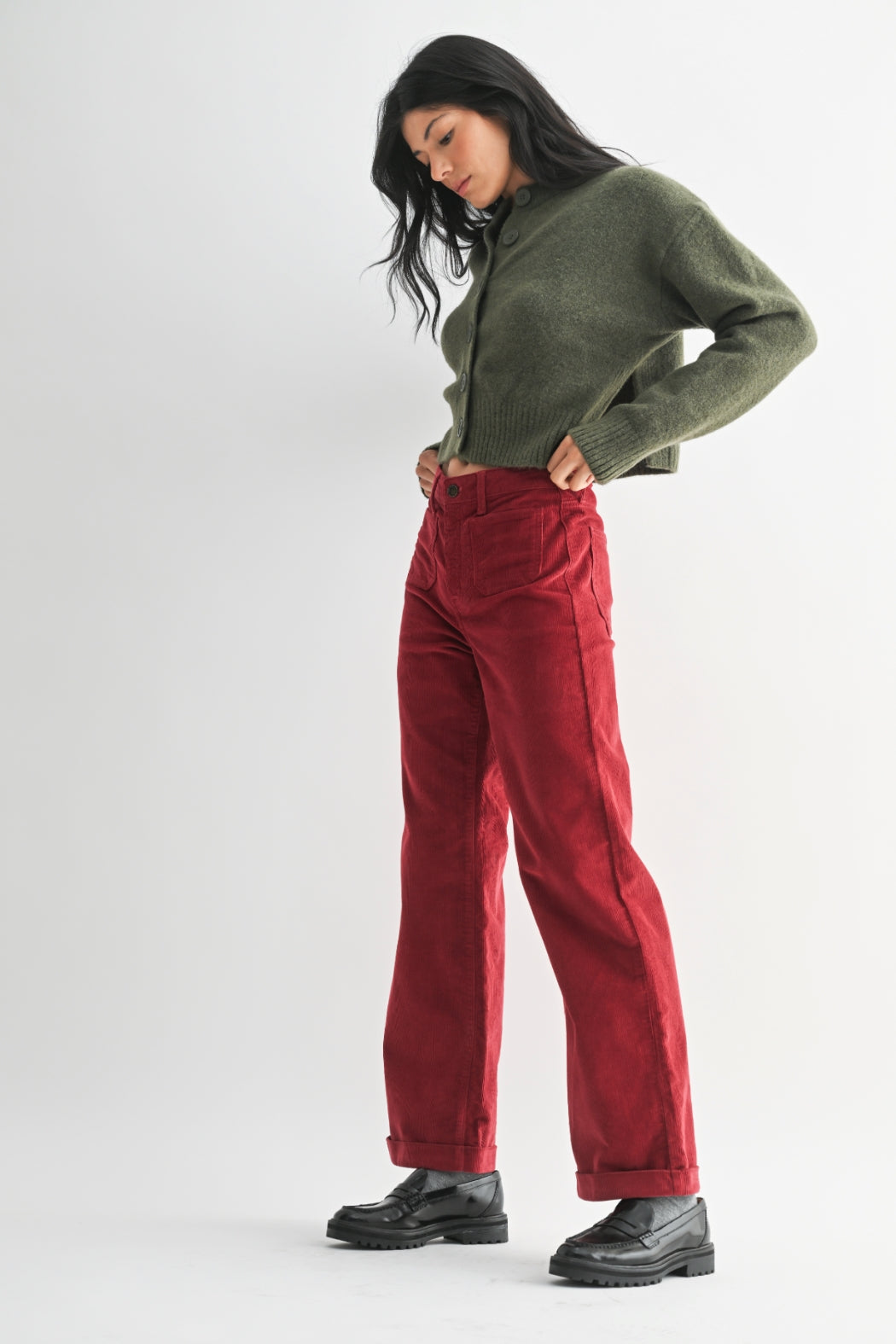 Just Black Denim Corduroy Mini Patch Pocket Wide Leg - Dark Red