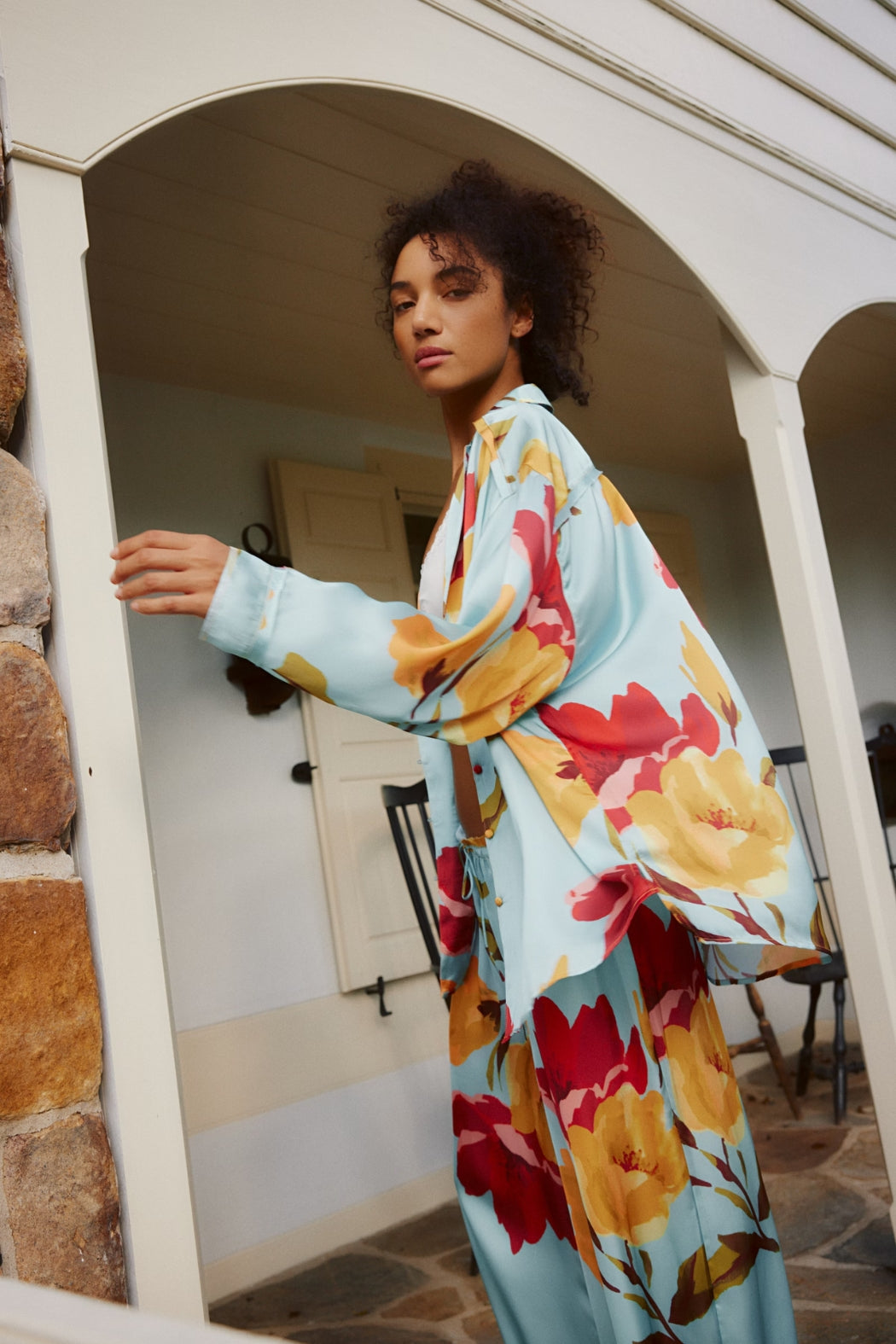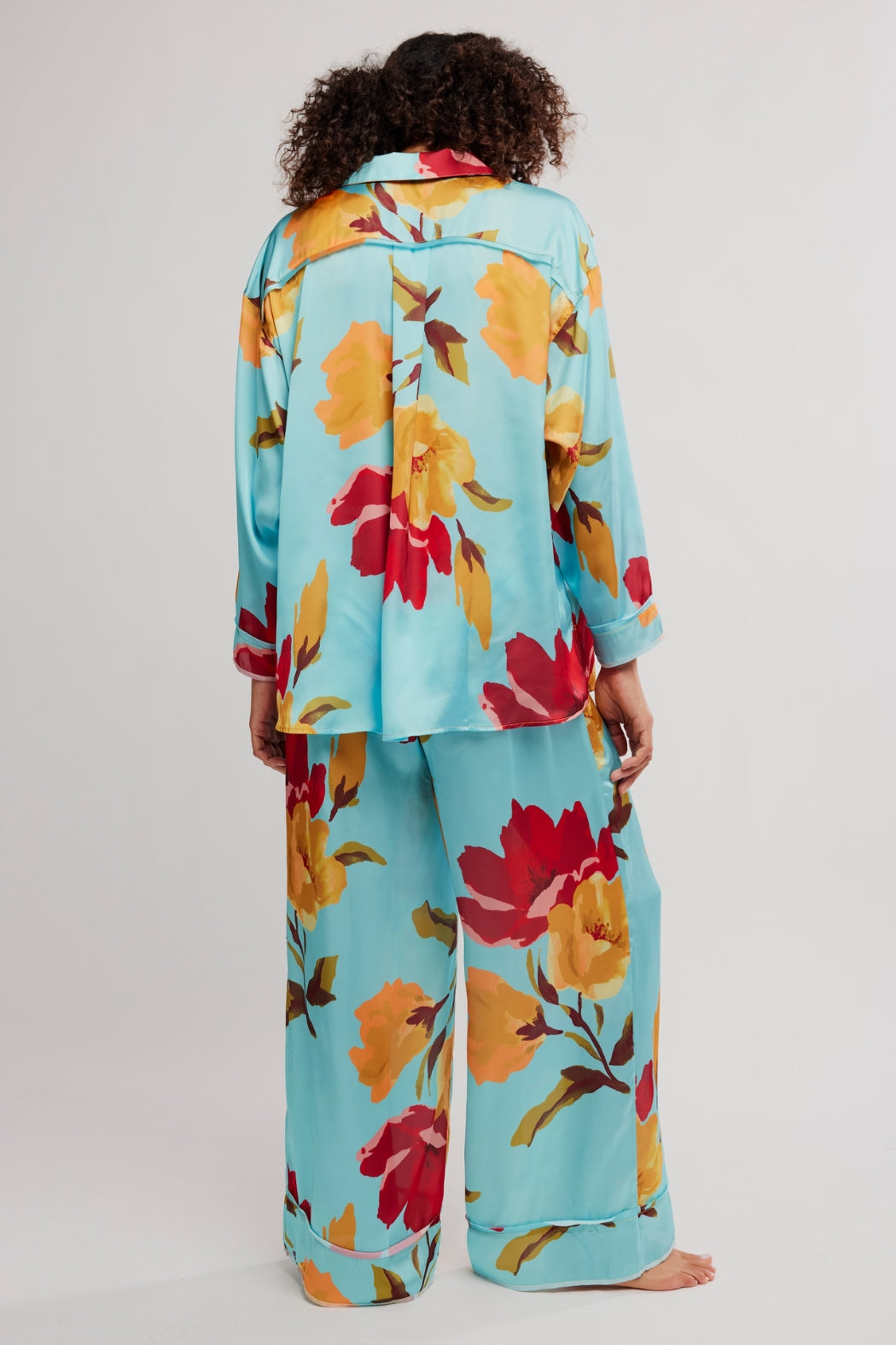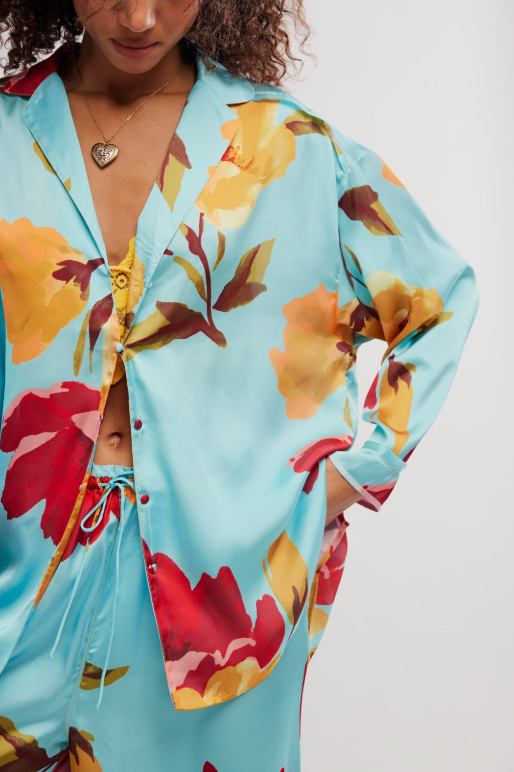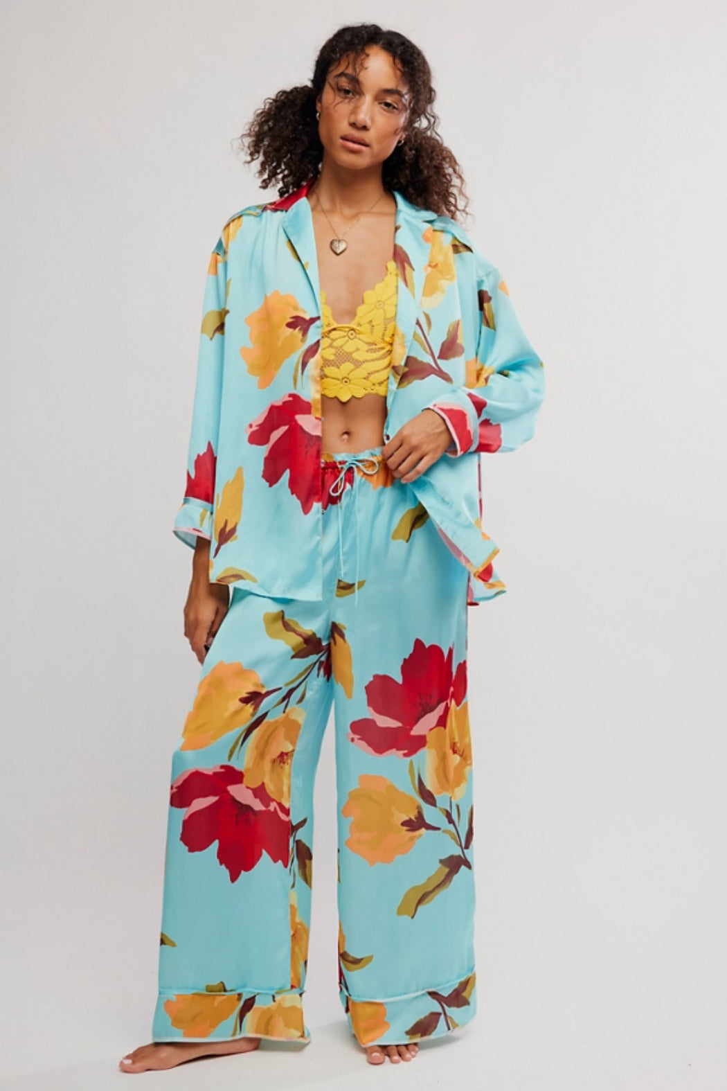 This Free People pajama set features a soft printed fabrication and oversized silhouette with a long-sleeve top and matching wide-leg bottoms. This set is lightweight and breathable, plus it features a button-front top and elastic waistband with adjustable drawstring.