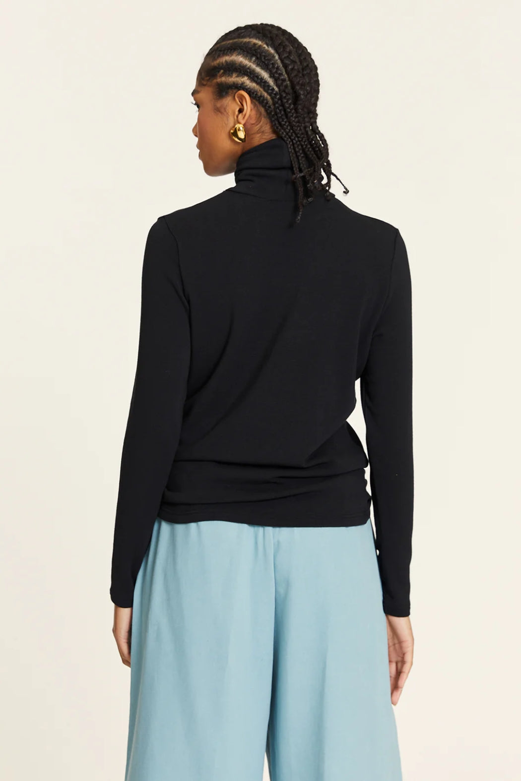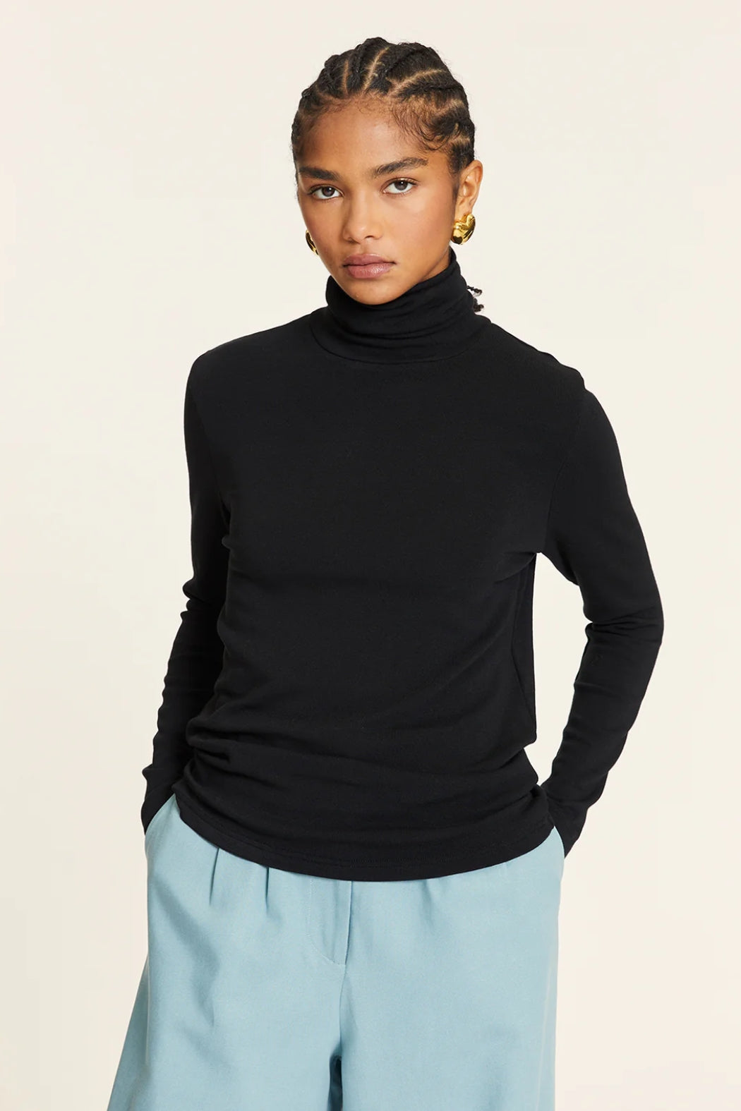 A everyone-must-have piece for your wardrobe. Black turtleneck knit top, long straight sleeves, waist-length. By Pepaloves.