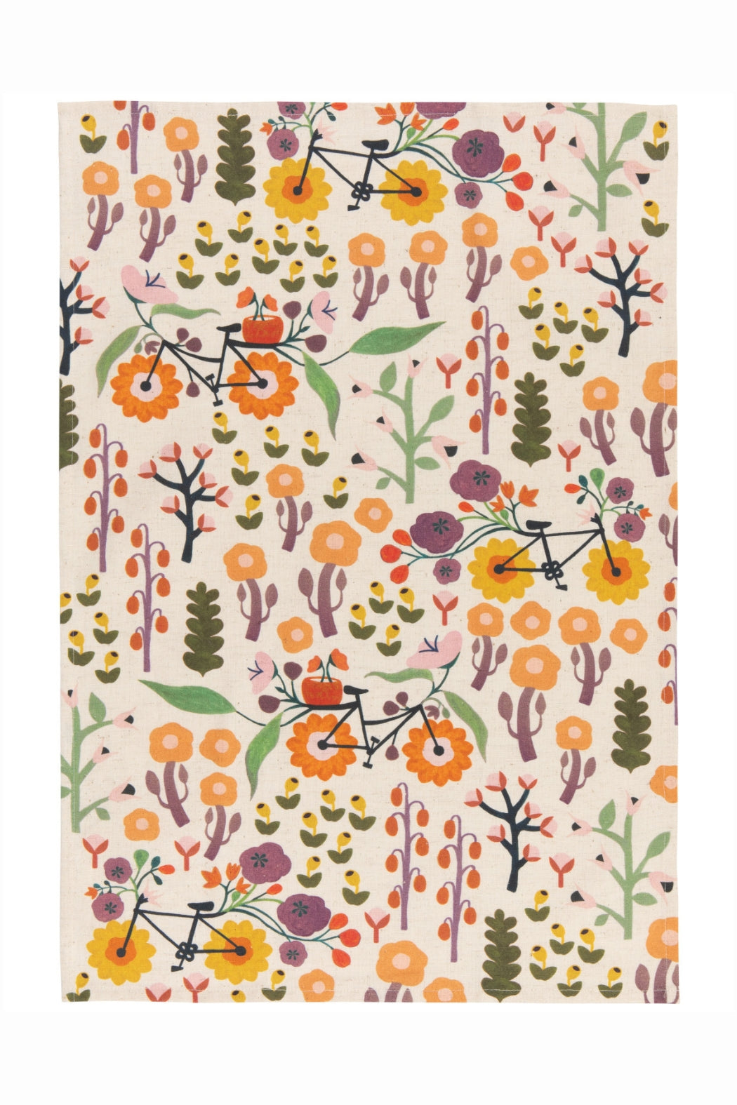 Add life and character to your kitchen with our fun and colorful Petal Power printed cotton dishtowel. A perfect combination of form and function, this towel will make washing up less of a chore. Celebrate spring's fleeting beauty with Danica Studio's Petal Power collection. Blossoms branch as you breeze along the bike path, pedaling towards longer, brighter days. Dimensions: W18 x L28in.
