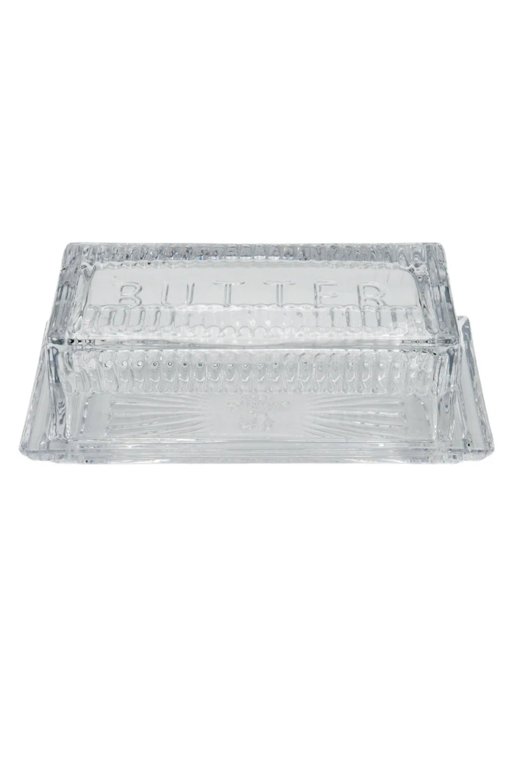 Glass Butter Dish based on a traditional design and cast in crystal clear glass. With a timeless appeal we just love, it is classically simple and will keep you slab of butter ready to spread.