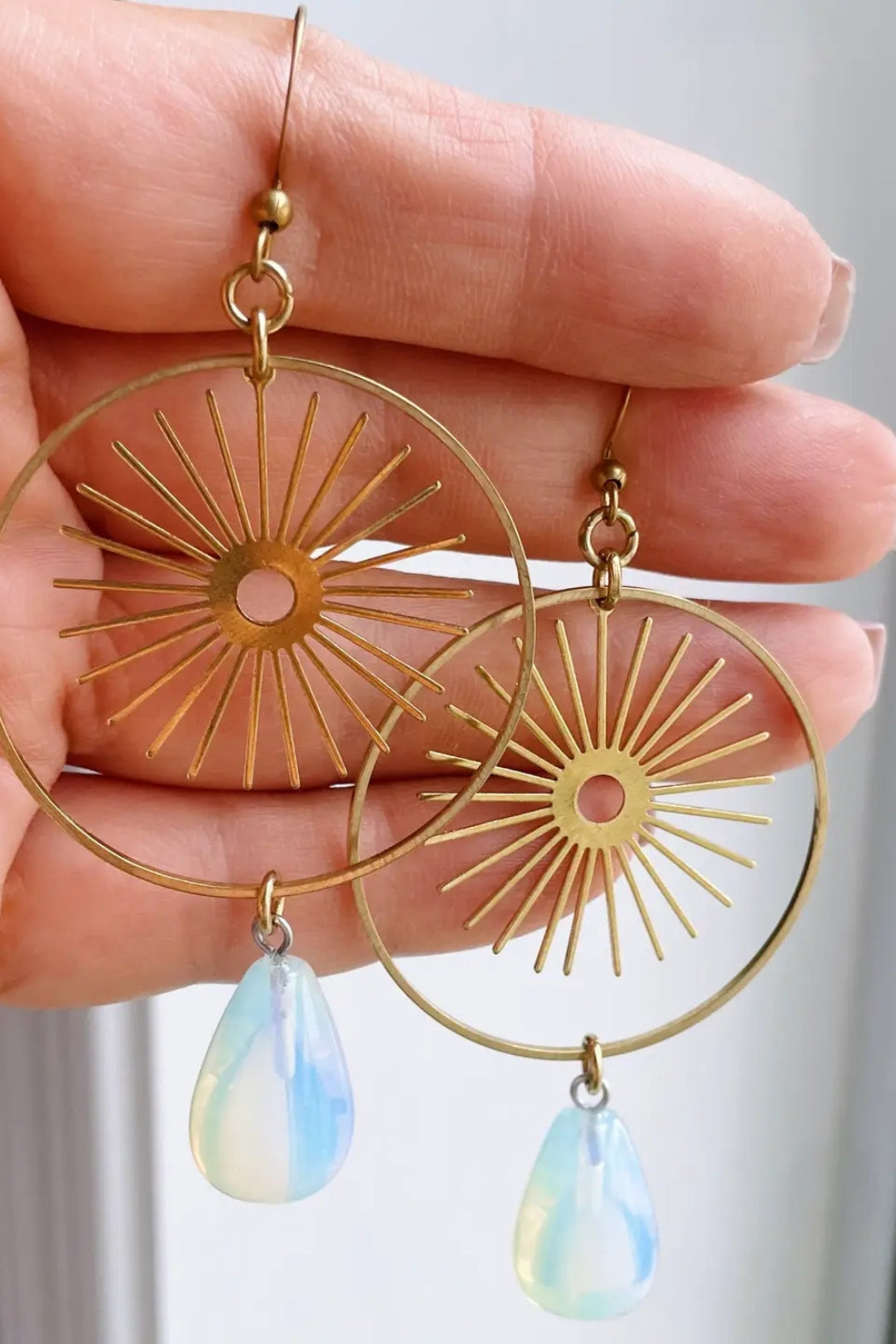 Jean Earrings - Brass Sun & Opalite