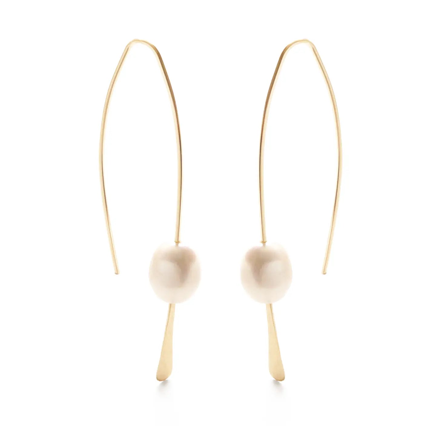 Mind's Eye Design Pearl Threaders are made of gold filled wire and natural fresh water pearls. They will vary in shape in size. Approx. 2" long. Handcrafted in the USA.