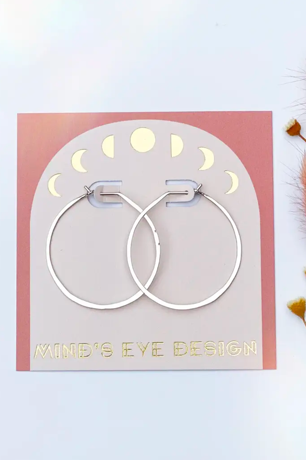 Mind's Eye Design Sterling Silver Hand Formed Hoops - 1.5"