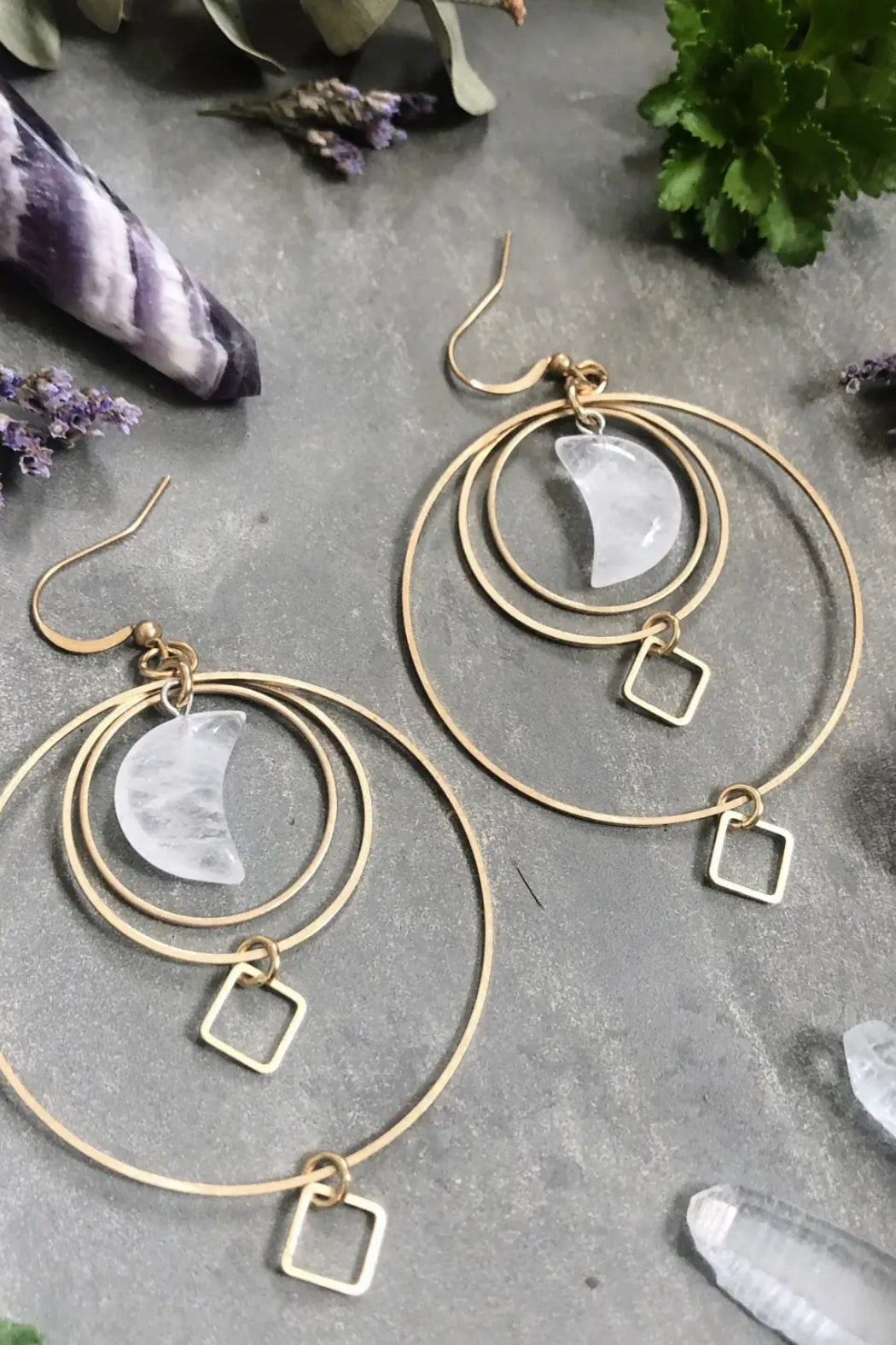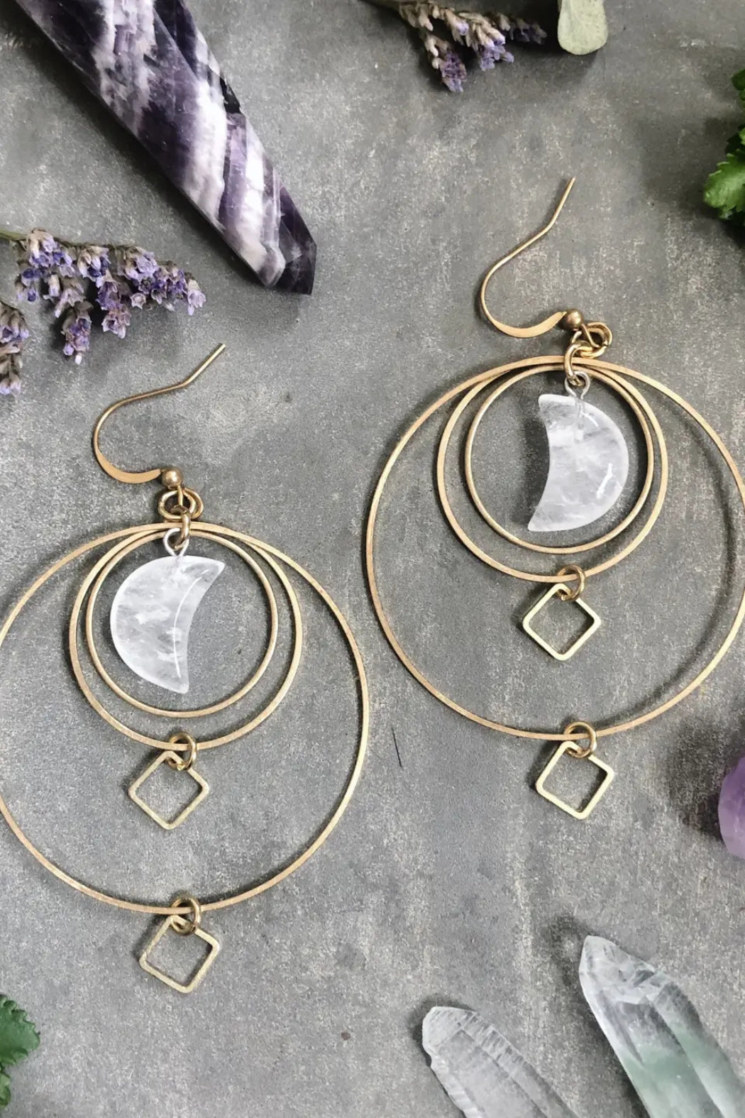North Earrings handmade by GeoMetricGem! Featuring moon shaped Quartz beads on brass hooks.