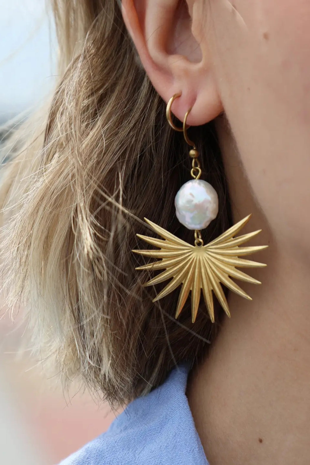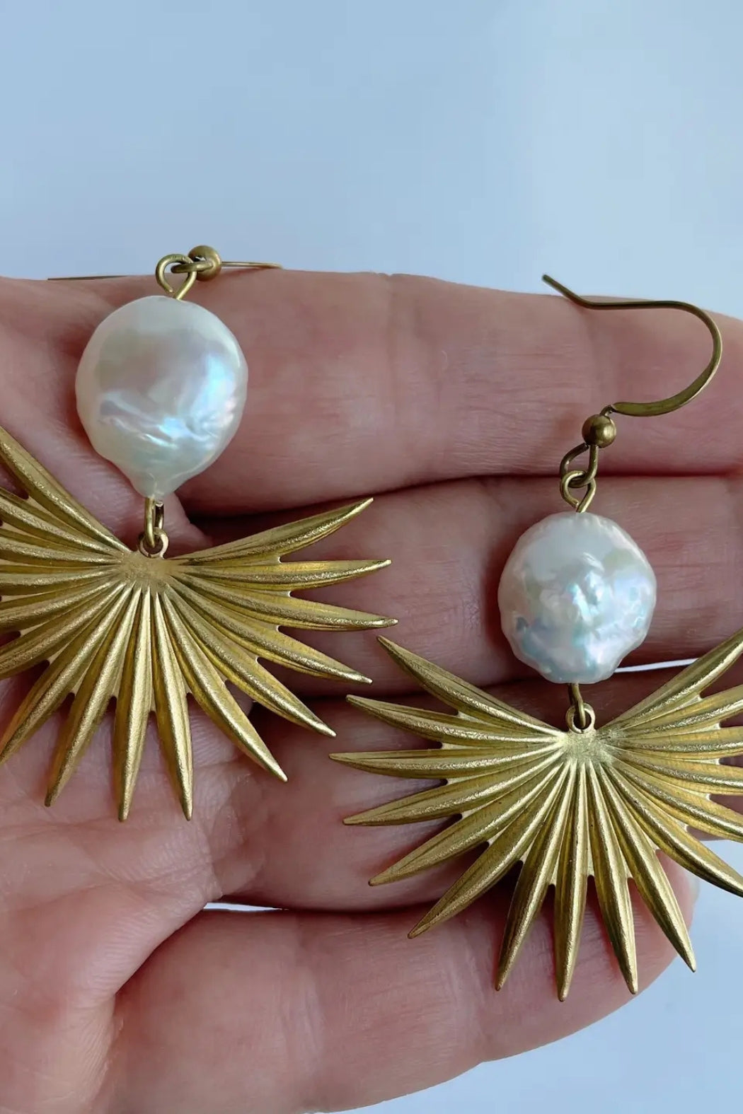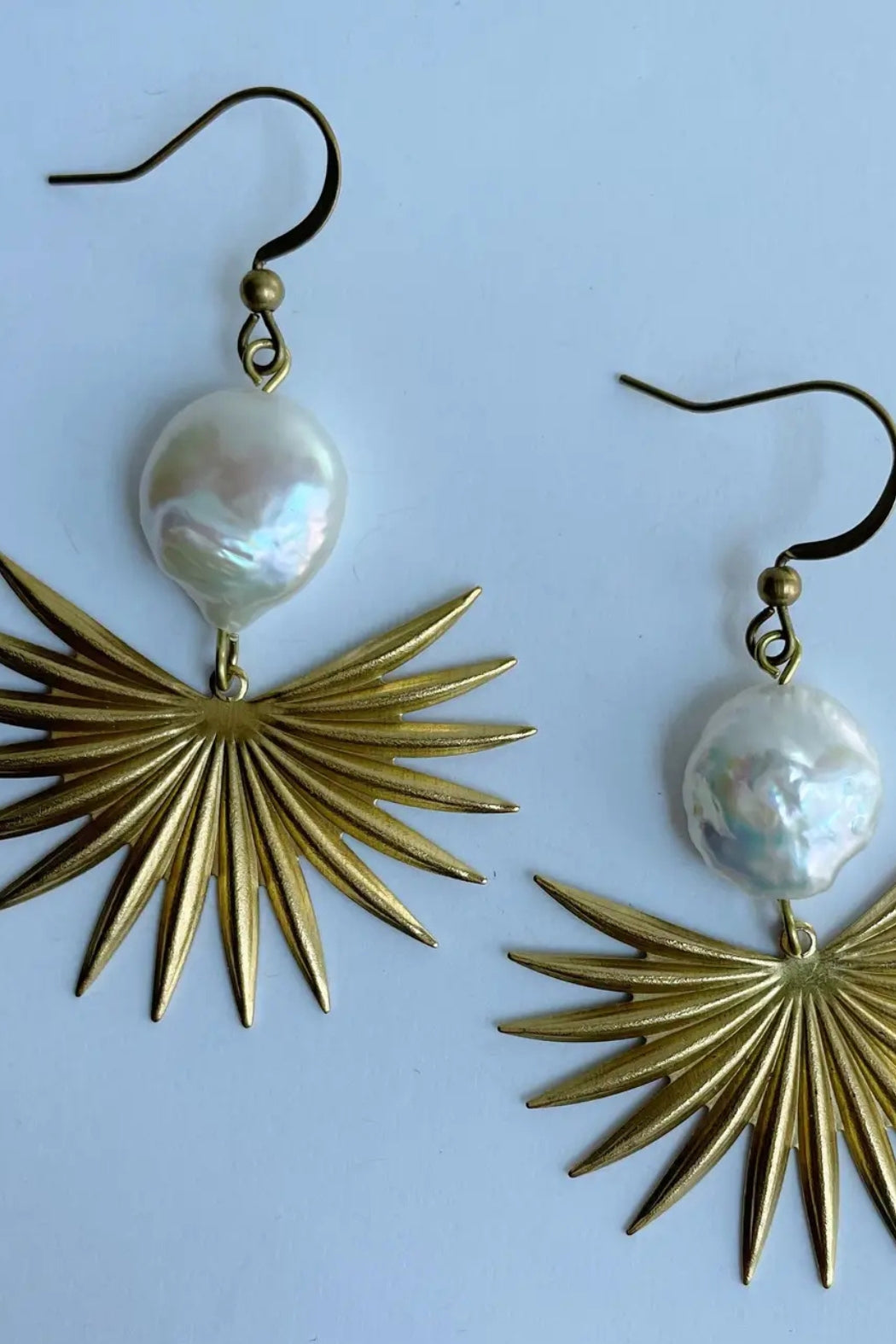 Fun, lightweight earrings handmade by GeoMetricGem using pearls & brass. Pearls are natural and each pair slightly varies in color/ size.