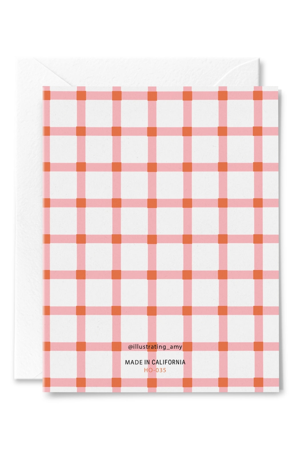 Card and envelope packaged in a clear cello sleeve. Printed in the USA on 110lb weight card stock. Designed by Illustrating Amy.
