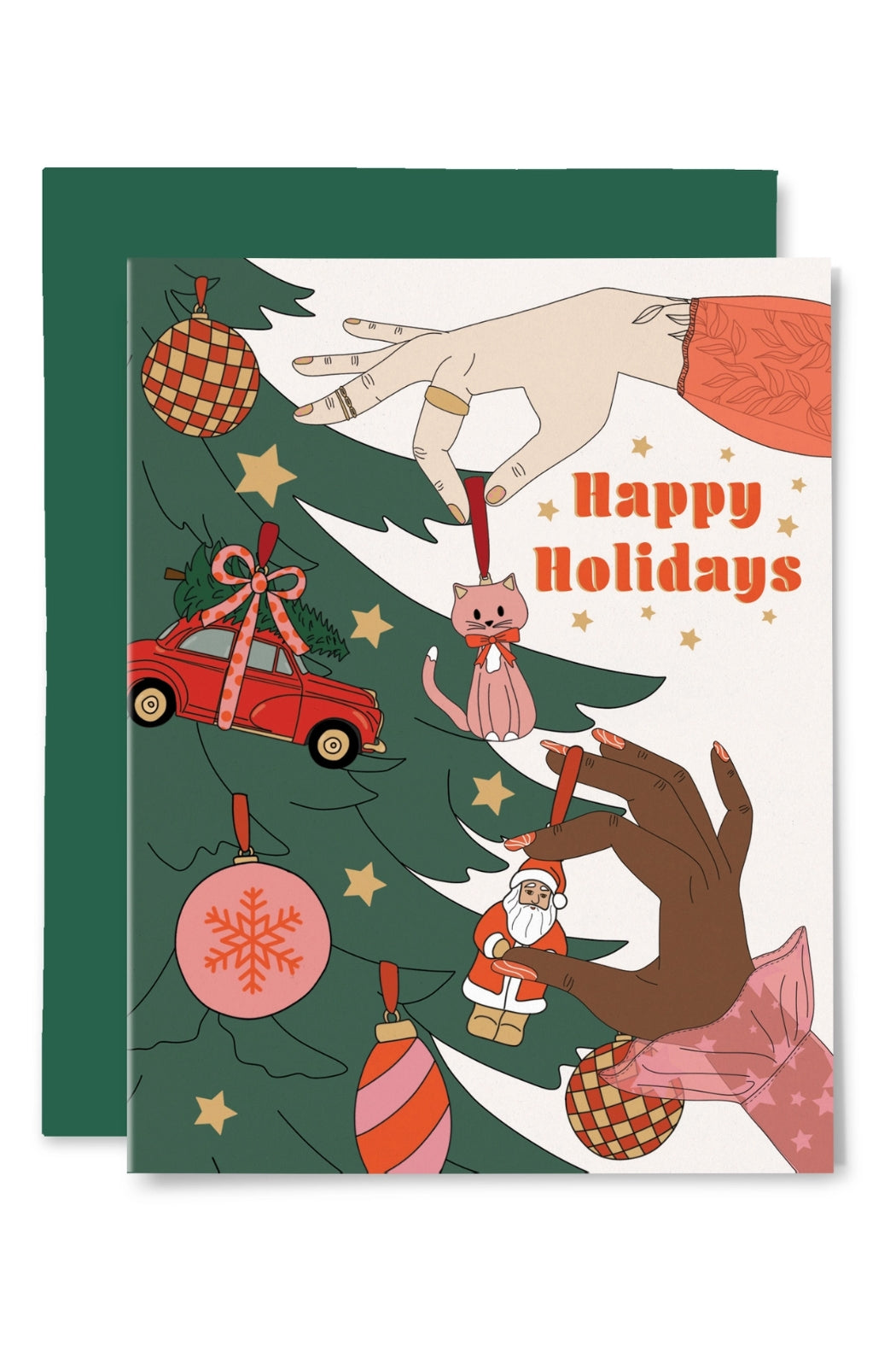 Illustrating Amy Greeting Cards - Happy Holidays Tree Decorating Card