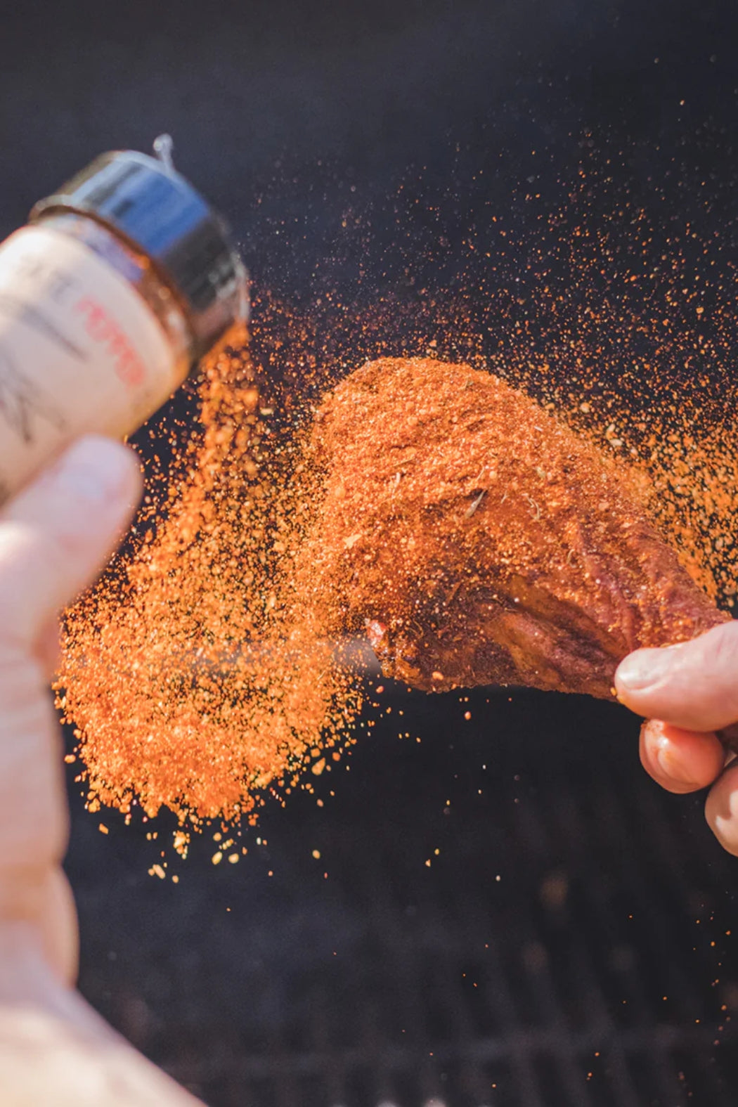 Ingredients: Asta 120 paprika, sea salt, granulated garlic, black pepper, granulated onion, thyme, oregano, sage, ghost pepper.