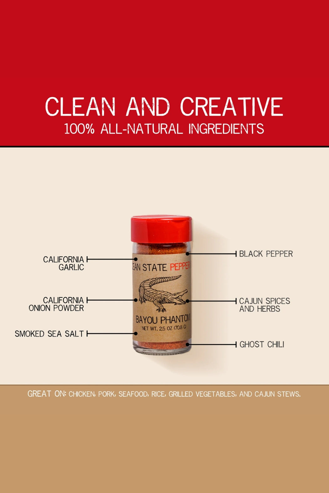 Bayou Phantom is a Ghost Pepper Cajun Seasoning.