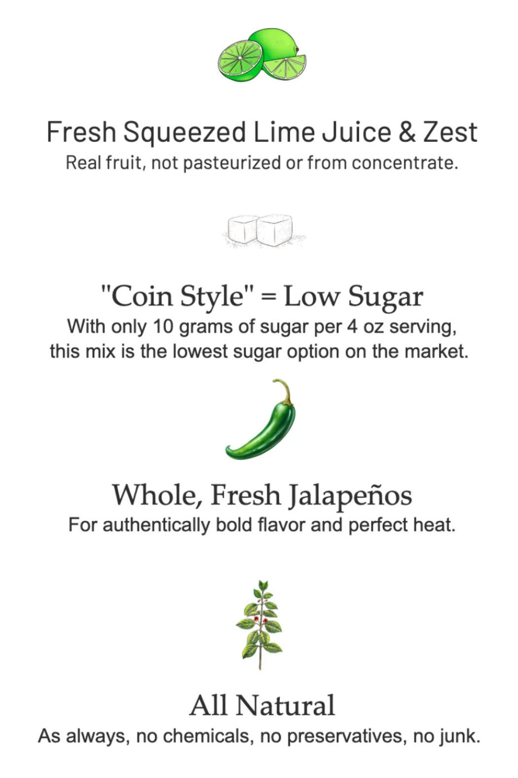 Ingredients: water, fresh jalapeño, crystallized lime, cane sugar, fresh orange, fresh lime, sea salt, orange zest, lime zest.
