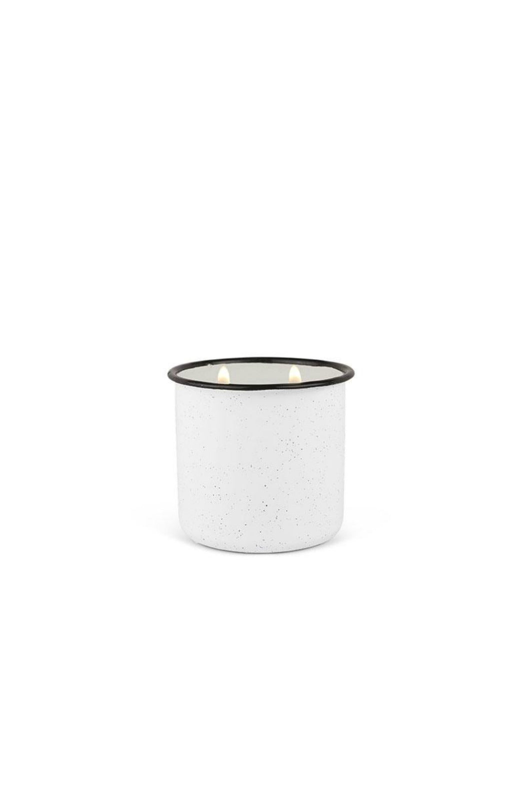 • White speckled enamelware pot with black lip