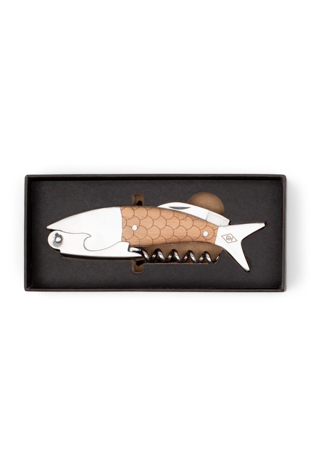 The fish-shaped corkscrew blends nautical whimsy with professional functionality, featuring a bottle opener, corkscrew, and foil cutter. This unique tool promises to make every bottle opening a delightful experience. By Gentlemen's Hardware.