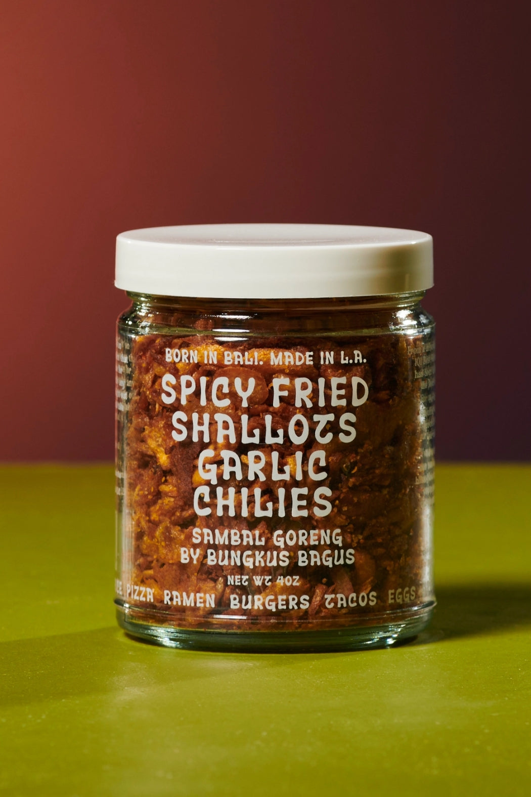 Sambal Goreng - or fried shallots, garlic, and chilies - is a chameleon ingredient that can be used as a flavorful base for cooking, a finishing on literally any dish, or a snack enjoyed straight out of the jar. It’s dry, lightweight, and delicious with everything - tacos, burgers, ramen, eggs, popcorn, stir-fry, pasta - the list goes on! This is Bungkus Bagus's personal take on the new pantry essential.