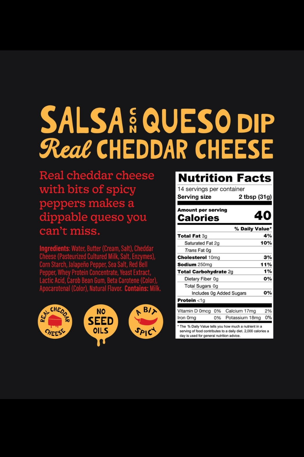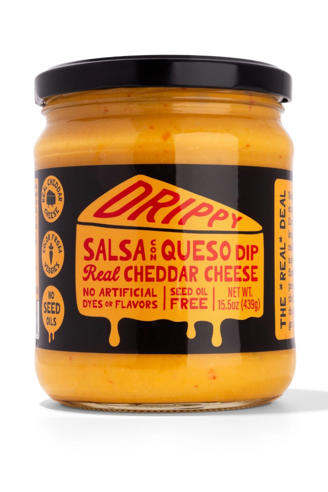 Drippy Dip salsa con queso combines real cheddar cheese with bits of spicy jalapeño and red bell pepper for a bold, zesty queso dip you can’t miss. This cheddar queso with peppers is perfect for dipping tortilla chips, drizzling over tacos, or serving as a game day appetizer. Creamy, spicy, and dippable, it’s the ultimate crowd-pleasing salsa queso.