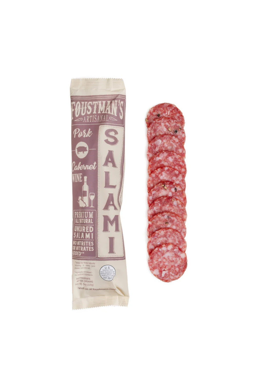 Foustman's Pork Uncured Salami - Cabernet Wine
