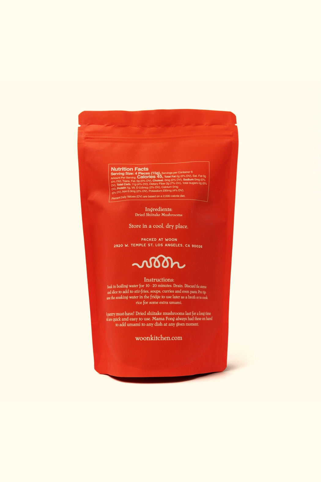 A pantry must-have! Dried shiitake mushrooms last for a long time and are quick and easy to use. Woon's Mama Fong always had these on hand to add umami to any dish at any given moment. Slice or use whole, stir fry with veggies, noodles, or rice, add to soups, or even save the leftover soaking water to use as a broth for some extra umami.