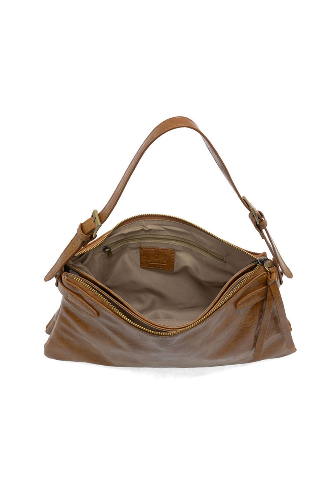 Ramp up your fashion game with the ultra-stylish Eve. This sleek style features a modern shape and comes in distressed vegan leather. Keep everything organized with three inner compartments and one exterior zip pocket. Sling it over your shoulder and the Eve shoulder bag will instantly turn you into a fashionista!
