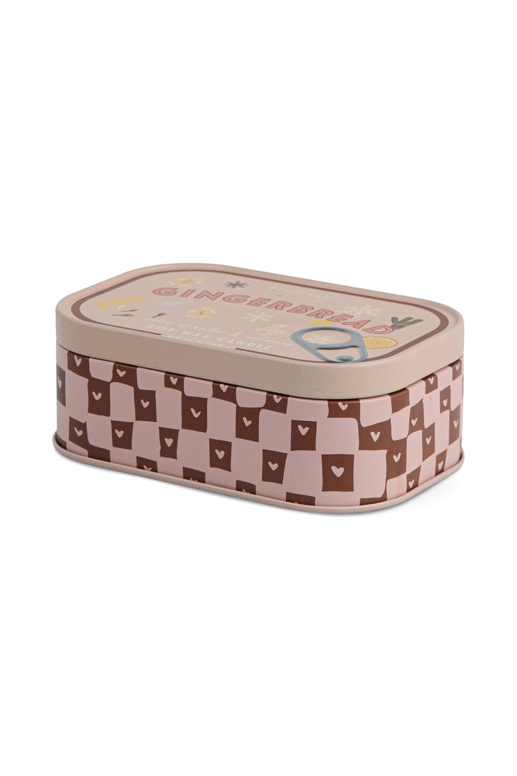 Infuse your home with a touch of culinary charm and a comforting scent with the Gingerbread Bistro Candle Tin. Feature hand-illustrated artwork and a clever faux pull-tab, inspired by vintage sardine tins, adding character to any space. With two wicks for an even burn and a cozy glow, these aromatic candles are sure to become a favorite in your home. By Paddywax.