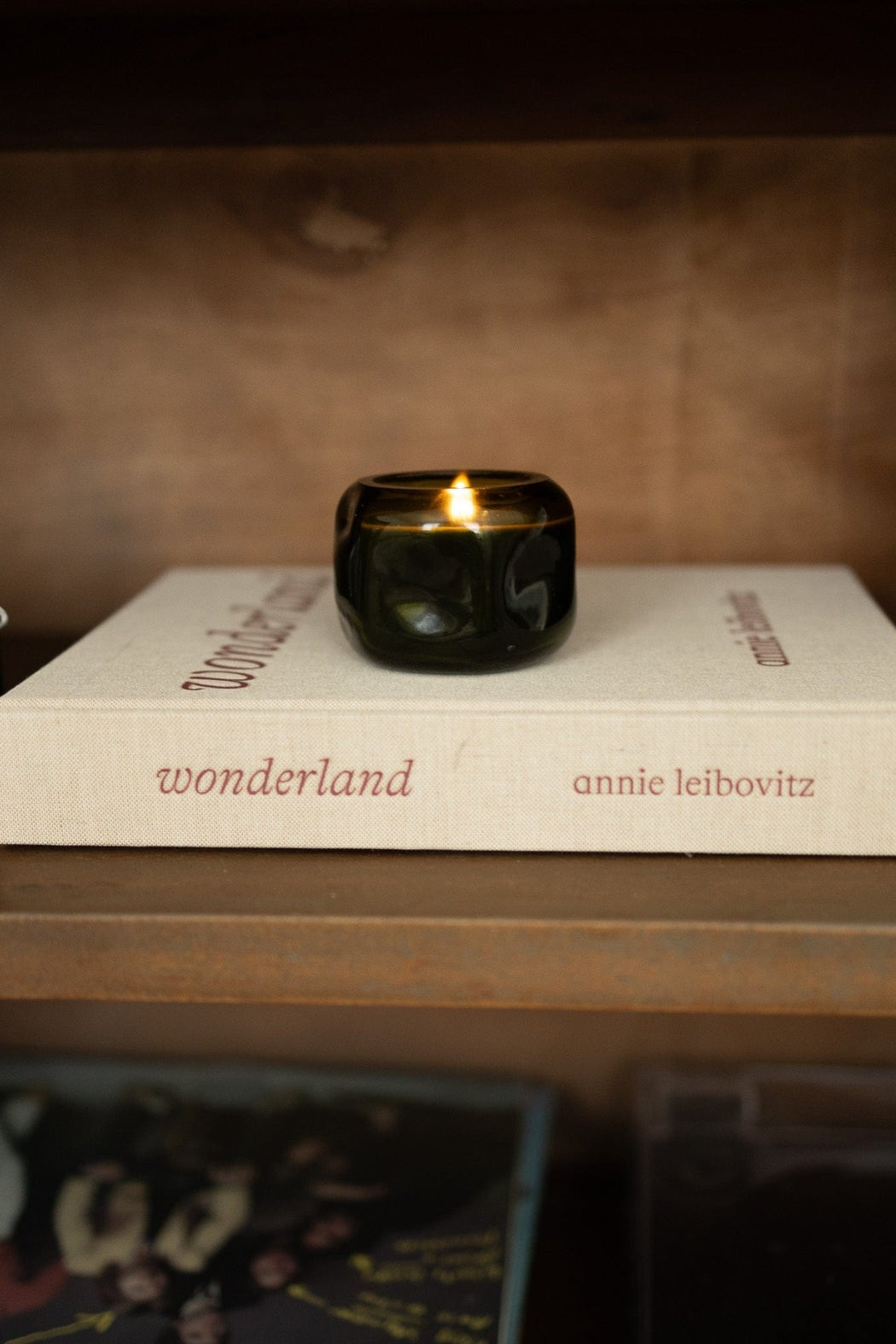 Compact yet rich, the 5 oz Wild Fig & Cedar candle offers the same earthy-woody fragrance with sweet fig and rose in a versatile green glass vessel. Perfect for gifting or adding color to small spaces, it repurposes easily as décor or storage. By Paddywax.