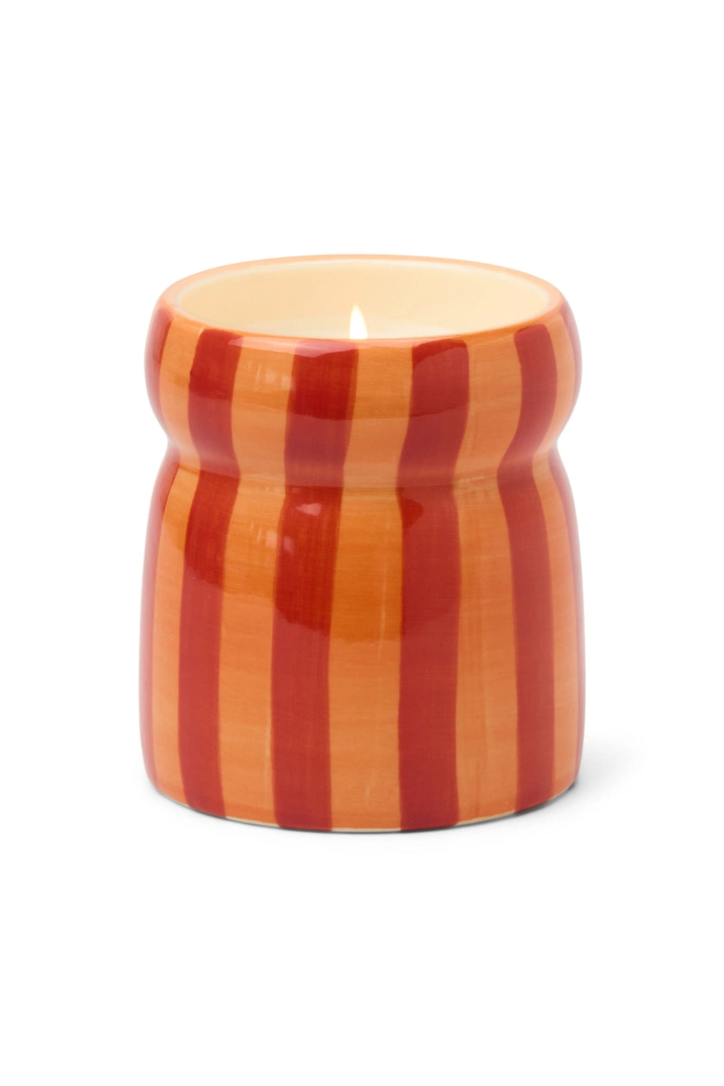 Bring home the holiday season with the Spiced Apple cabana ceramic candle. Housed in a hand-painted orange and red vessel with a matching lid, this festive candle blends crisp apple with warm spices for a cozy, nostalgic scent. Once the candle has finished, the lidded ceramic jar can be reused as a decorative container or storage piece. By Paddywax.