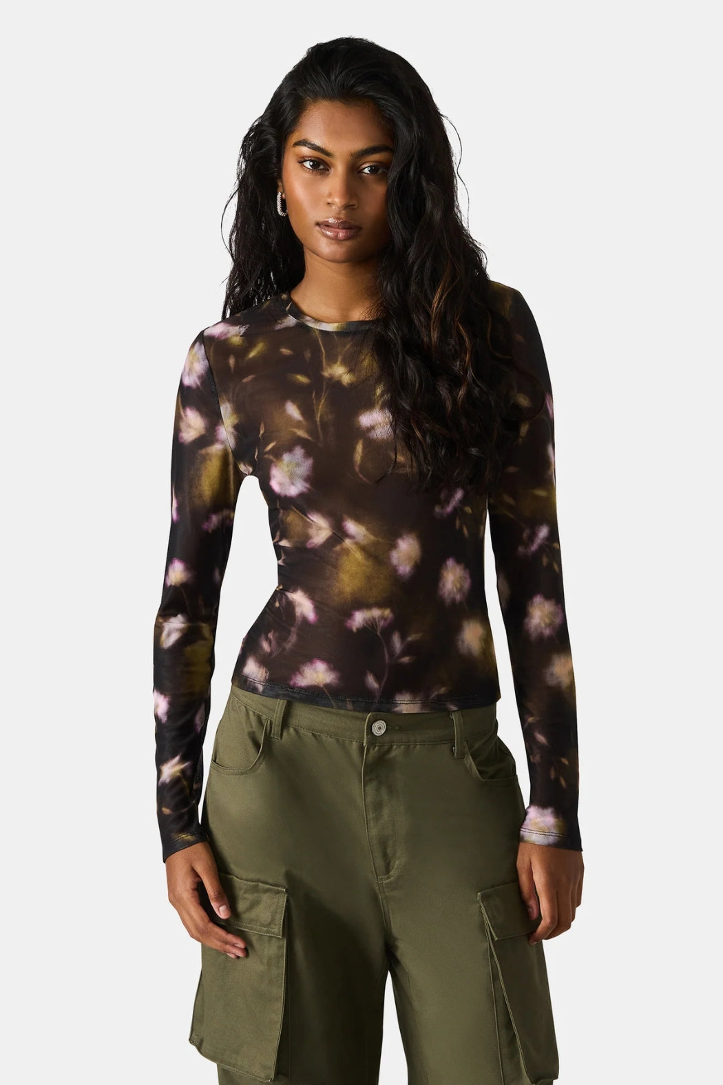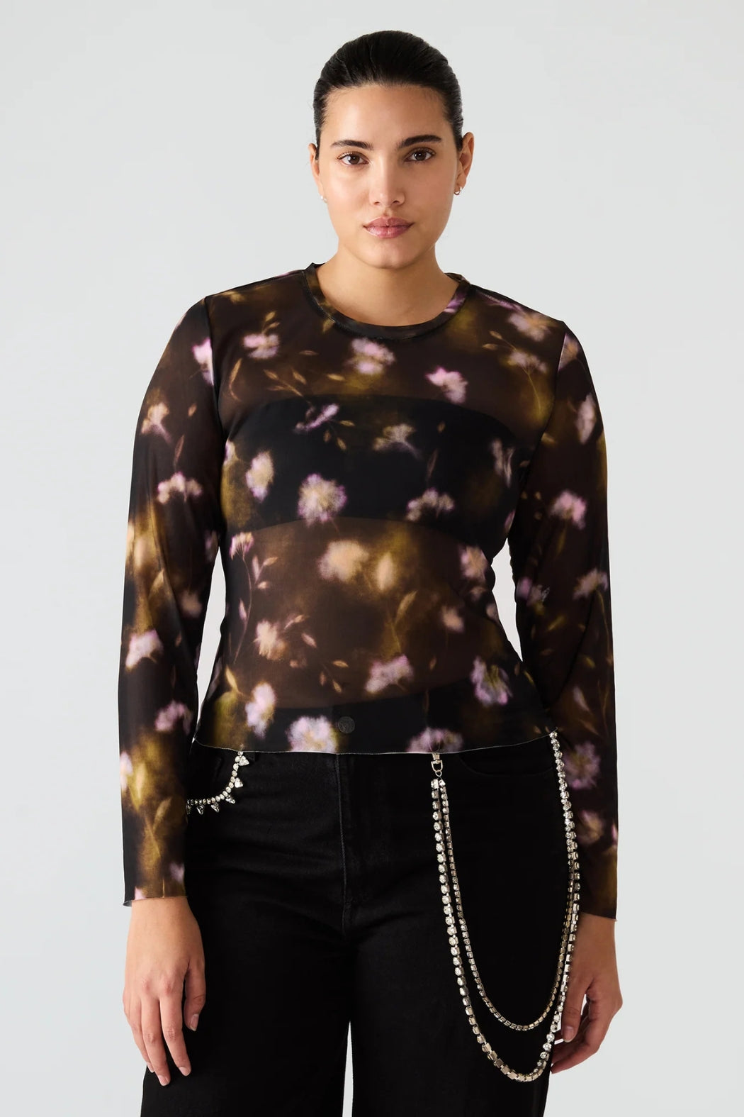 The Lilianna top from Steve Madden combines elegance and modern design with its long-sleeved silhouette crafted from breathable mesh fabric. Featuring a delicate floral print, this top adds a sophisticated touch to any outfit while offering lightweight comfort. Ideal for layering or wearing solo, it delivers a refined statement piece for versatile styling with both casual and dressier looks.