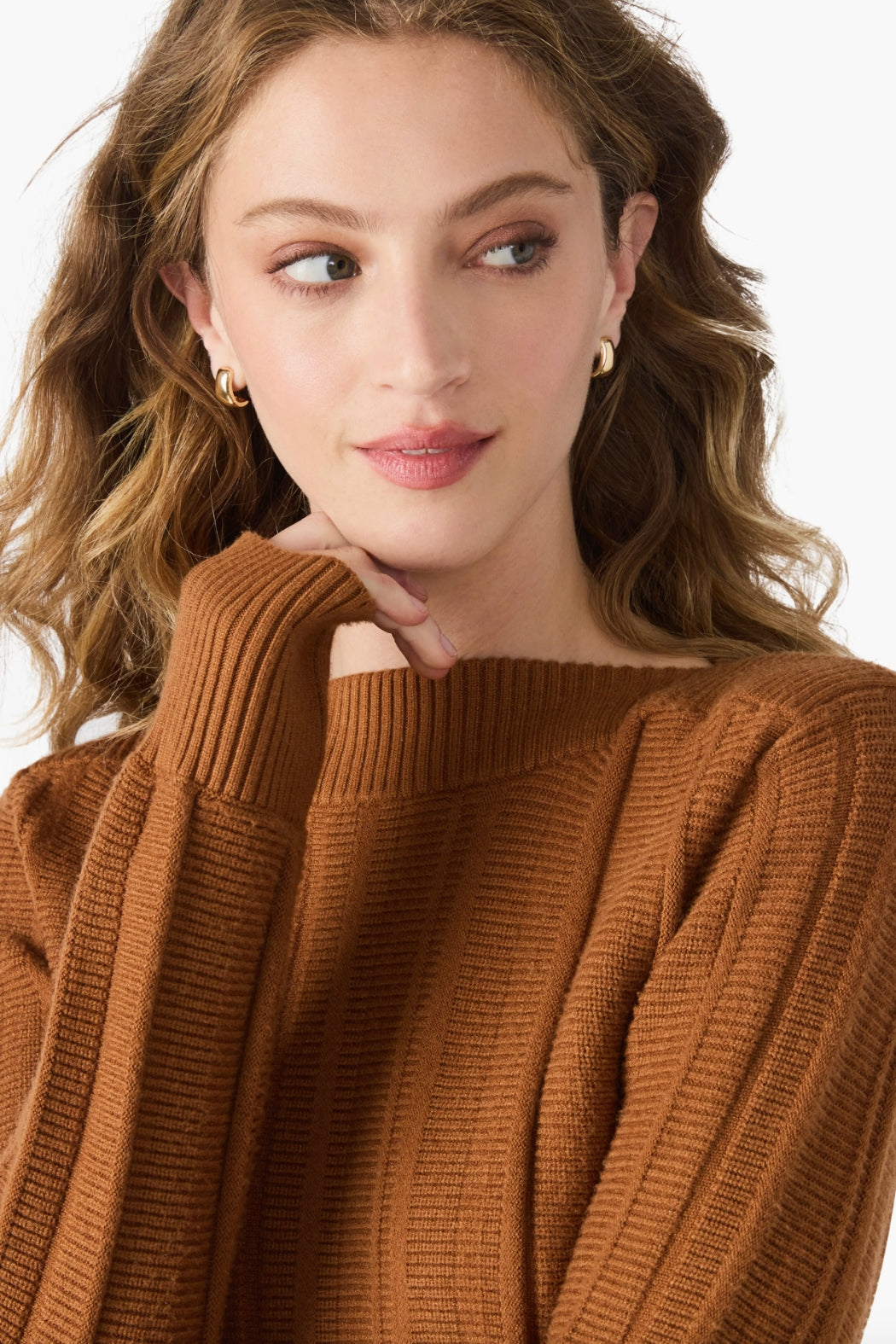 A boat neck relaxes the vibe of this chunky sweater knit with dimensional ribbing for modern texture. By Steve Madden.