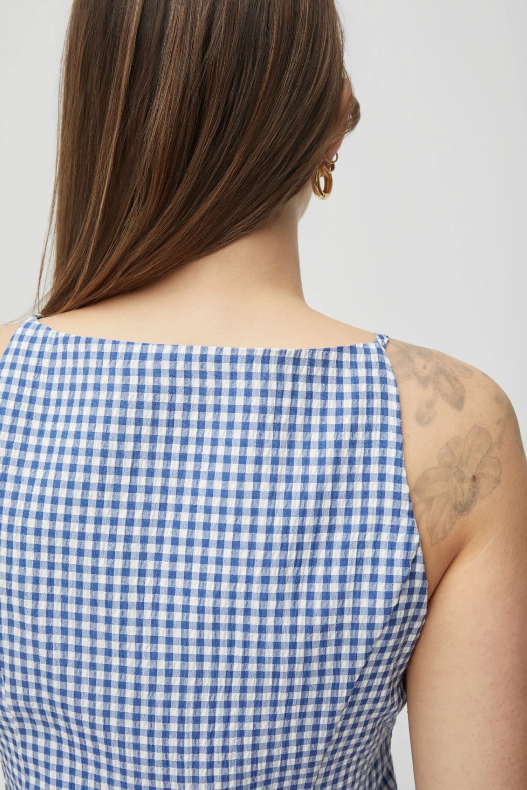 The Madeline Top is a charming blue and white gingham design that captures effortless spring and summer style. Its crisp, classic pattern pairs beautifully with everything from denim to linen shorts, making it a versatile wardrobe essential. Perfect for warm-weather days, casual outings, or relaxed gatherings, this top brings a fresh, cheerful vibe to your seasonal rotation.