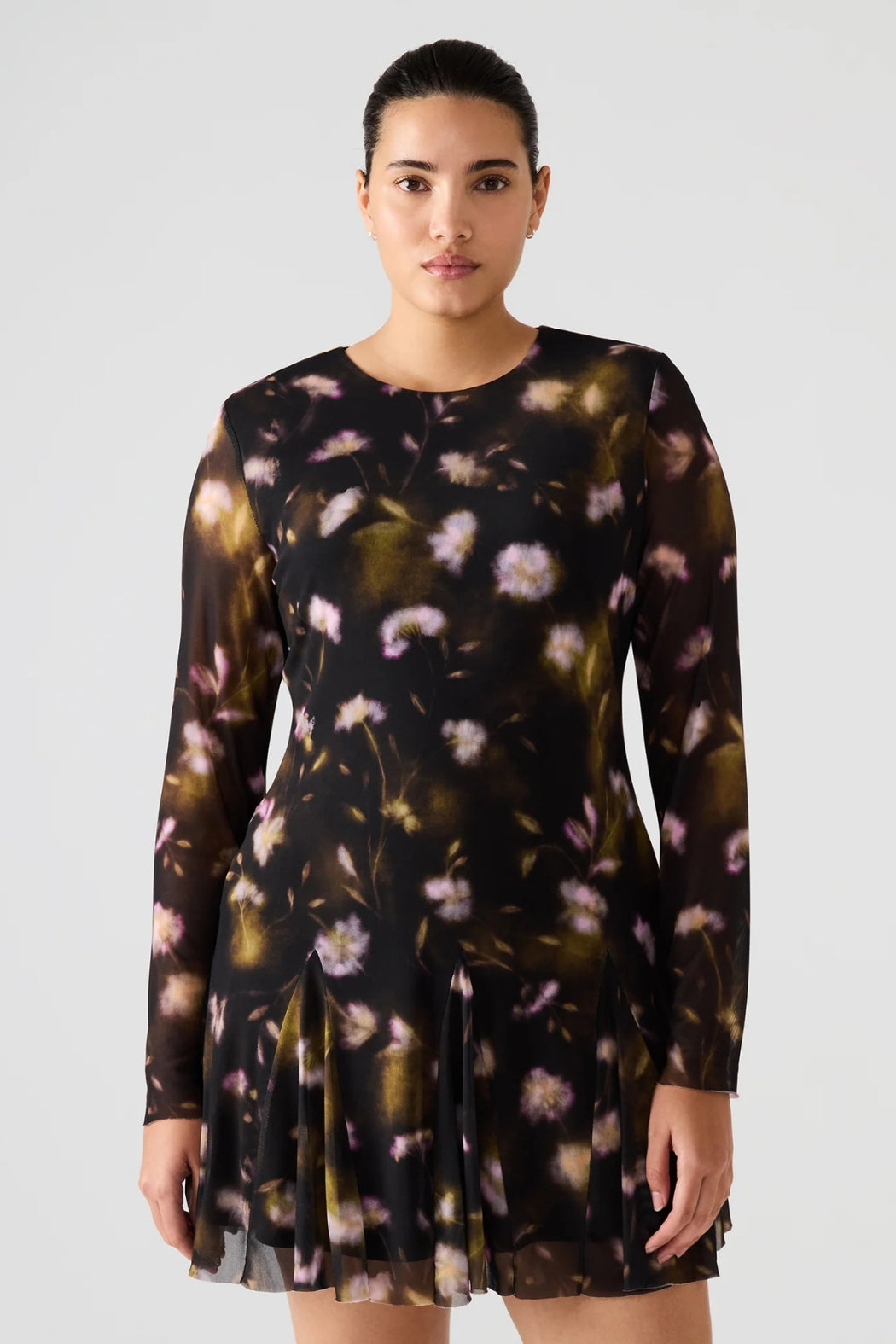 Elevate your wardrobe with the Bliss Dress from Steve Madden. This dress features a flattering mini length and a flowy silhouette that moves effortlessly. The Bliss Dress showcases delicate sheer mesh long sleeves for a subtle, modern edge, while the intricate black ditsy floral print adds timeless, feminine charm. Perfect for day-to-night wear, it combines comfort and style with expert craftsmanship.