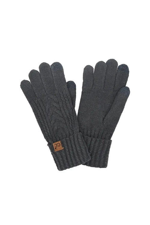 C.C Solid Ribbed Knit Glove - Dark Melange Gray