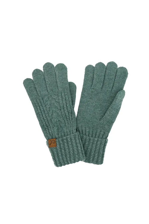 C.C Cable Heather Knit Gloves - Light Melange Gray