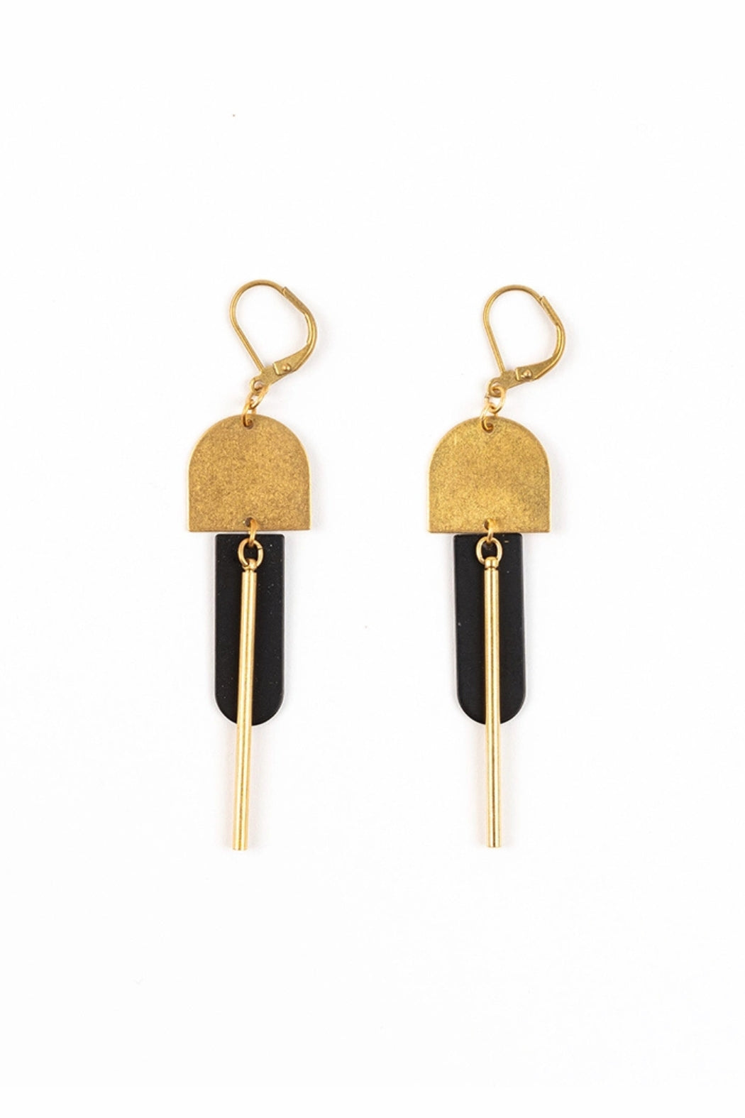 A single brass bell shape and chime creates a modern contrast with a matte black brass oval.