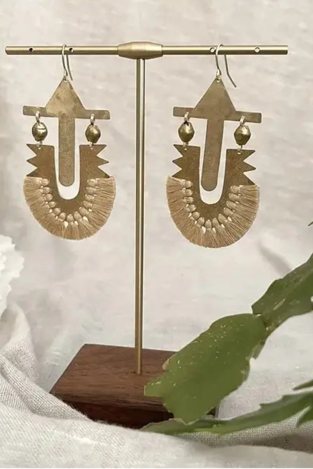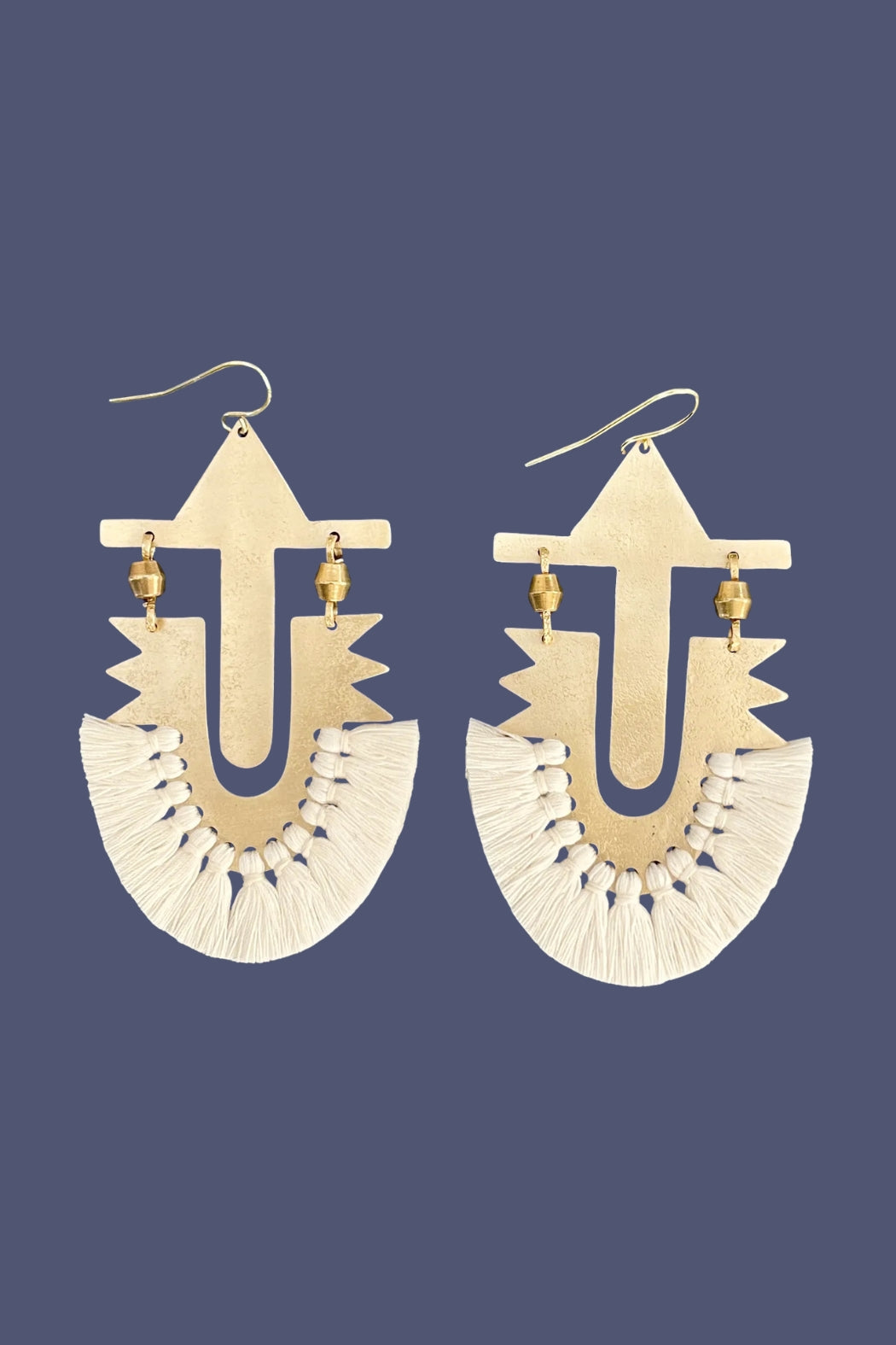 Symbolizing the light and guidance that stars represent, these Star Earrings are crafted from textured brass and adorned with soft cotton tassels. The bold, geometric design is a tribute to those who seek adventure and follow their own path, just as stars have guided travelers for centuries.