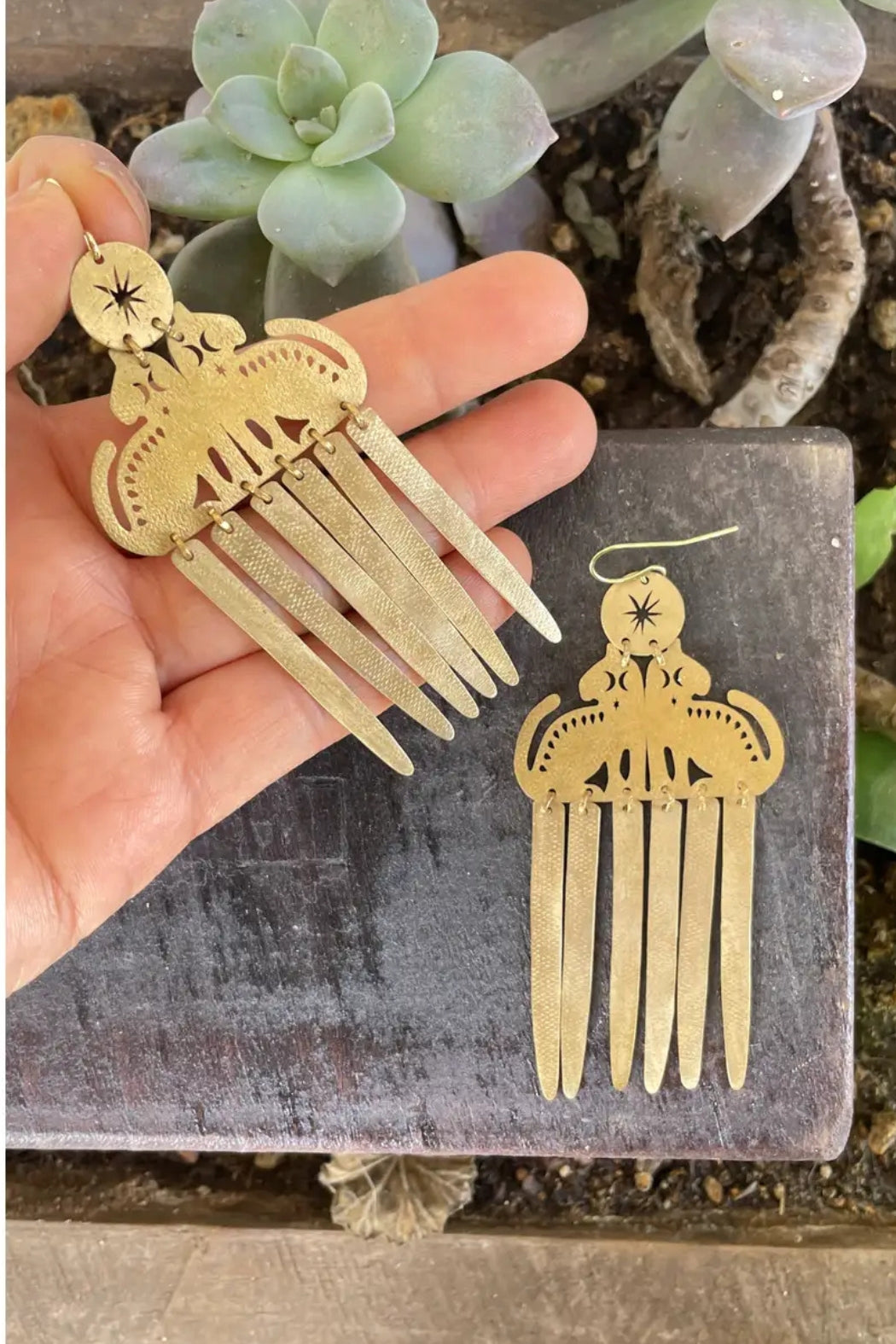 The felines represent strength and intuition, while the falling strips echo the idea of release, rhythm, and emotional flow like water finding its way. The brass is laser cut, then hand textured and hammered using traditional techniques, giving the surface a lived-in finish.