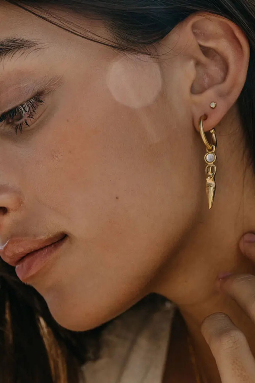 Selene was the Greek Goddess of the moon. These cute earrings will help you feel like the Goddess you are. Matte 14k gold over brass with surgical steel posts and 4mm mother of pearl cabochons.
