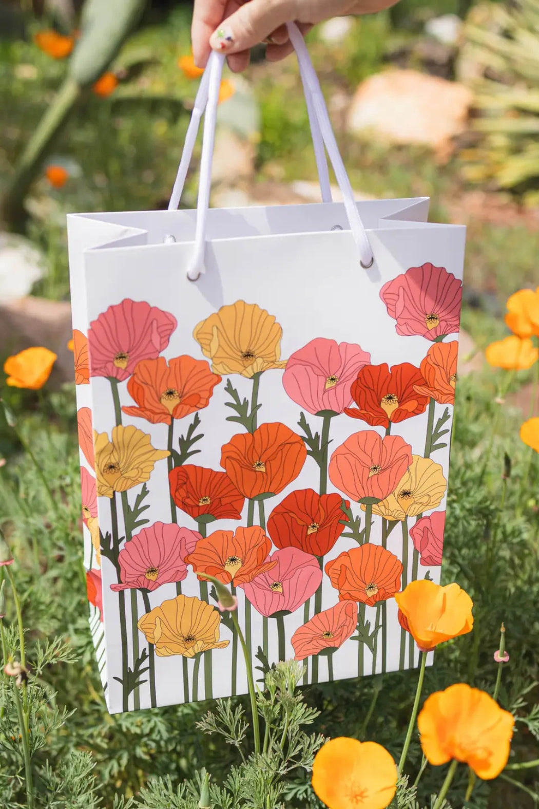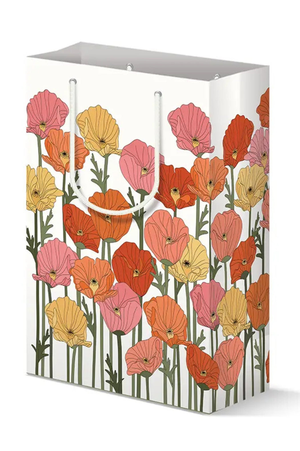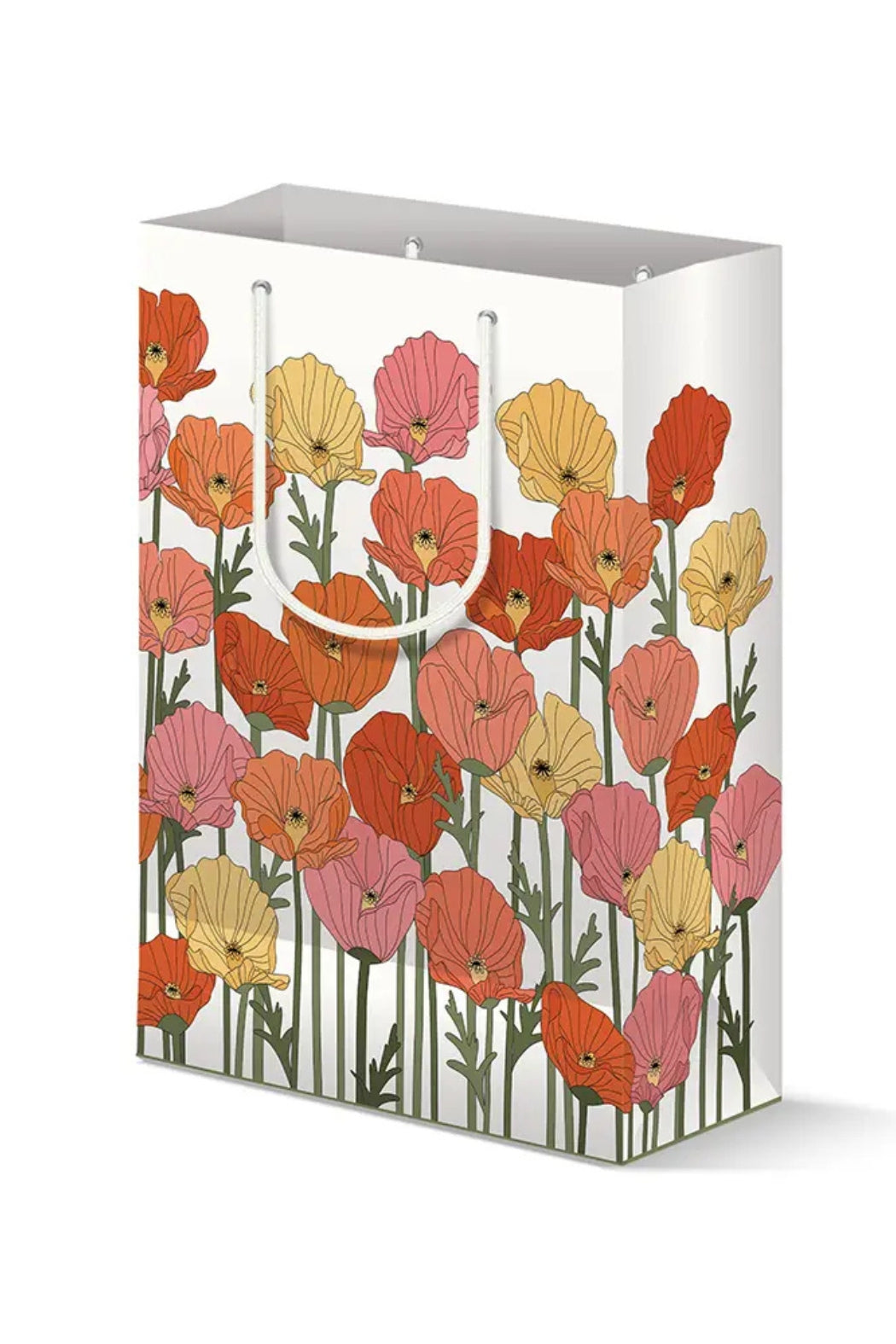 Add a touch of botanical beauty to your gifting with this elegant Poppy Fields Gift Bag. Featuring a hand-illustrated design of vibrant poppies in warm shades of orange, pink, and yellow, this bag brings a cheerful, nature-inspired charm to any occasion. Printed on high-quality paper with a matte finish, it’s both sturdy and stylish, perfect for birthdays, celebrations, or any thoughtful gift-giving moment. Finished with soft, durable rope handles for a luxurious feel.
