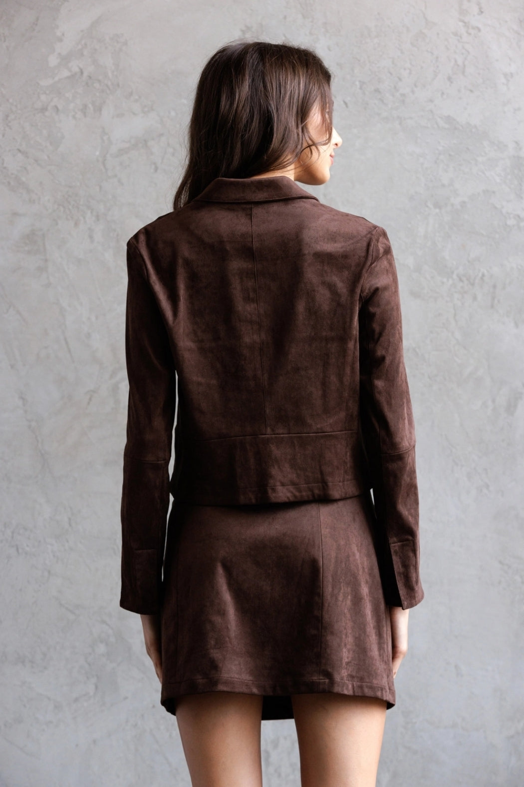 A timeless jacket with a velvety finish. Featuring a tailored, cropped fit with structured silhouette for a sharper look. This piece is a versatile statement piece your wardrobe needs!