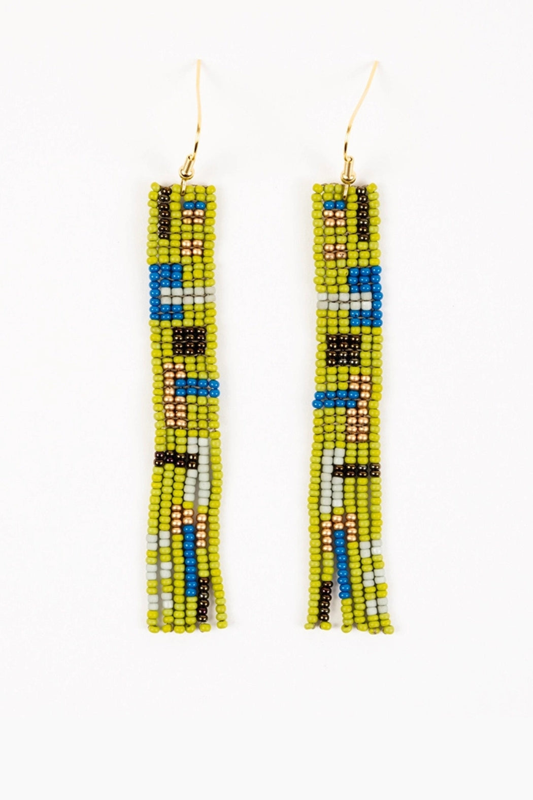 Cuadras Beaded Brass Earrings - Jungle Green