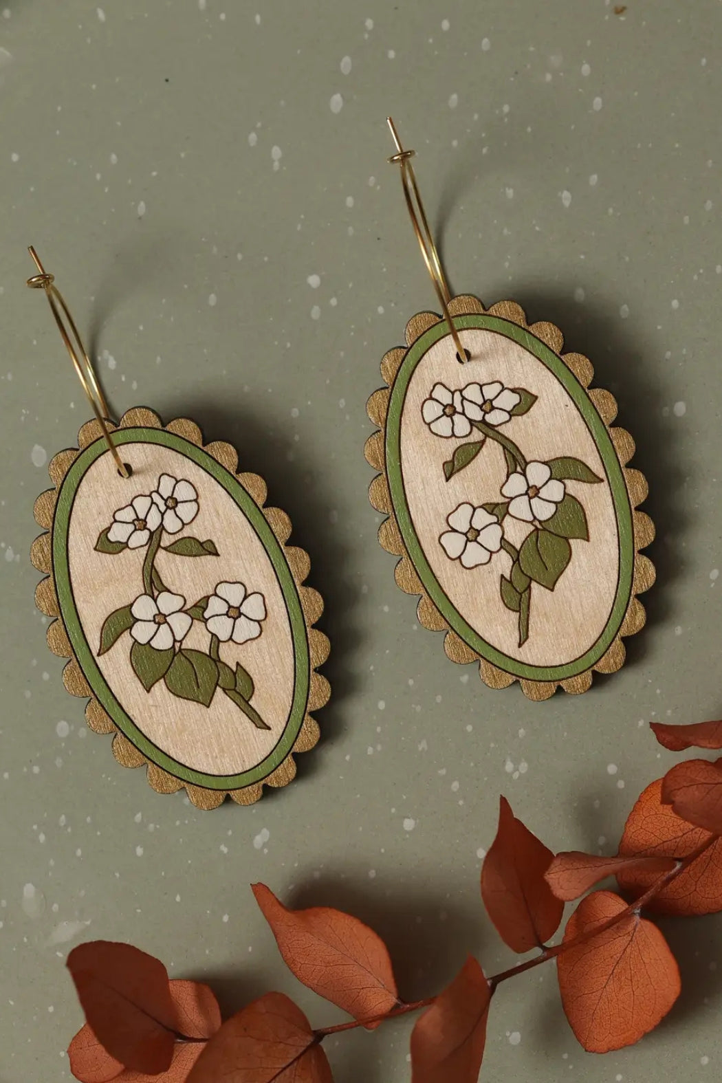 From the "Vintage Lace" Collection by Le Chic Miami -a nostalgic journey into the soft, feminine elegance of bygone eras. The Evelyn Floral Earrings are a homage to the timeless beauty found in your grandmother's jewelry box, encapsulating grace and charm. These earrings were laser cut on sustainable Baltic Birch wood then hand-painted.