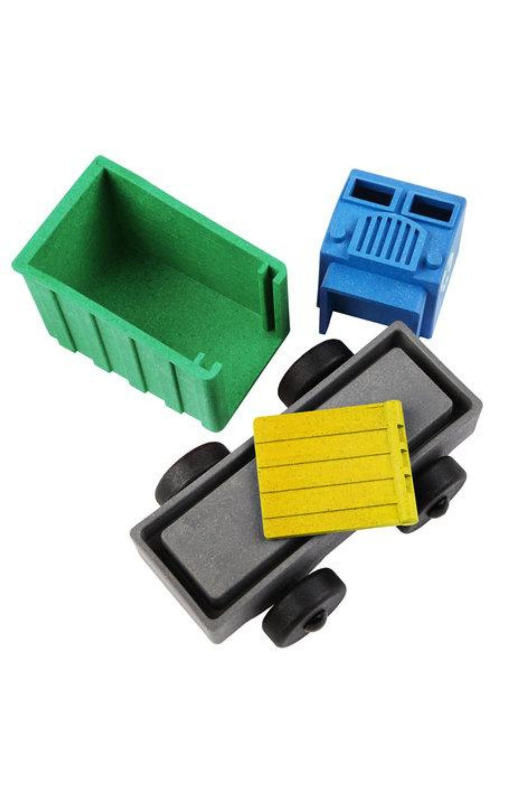 This STEM educational toy truck is sustainably made and encourages early childhood development of problem solving, creative play, and fine-motor skills in kids aged 3 and up. Four part stacking truck toy Parts Interchangeable with other Luke's Toy Factory toy trucks.