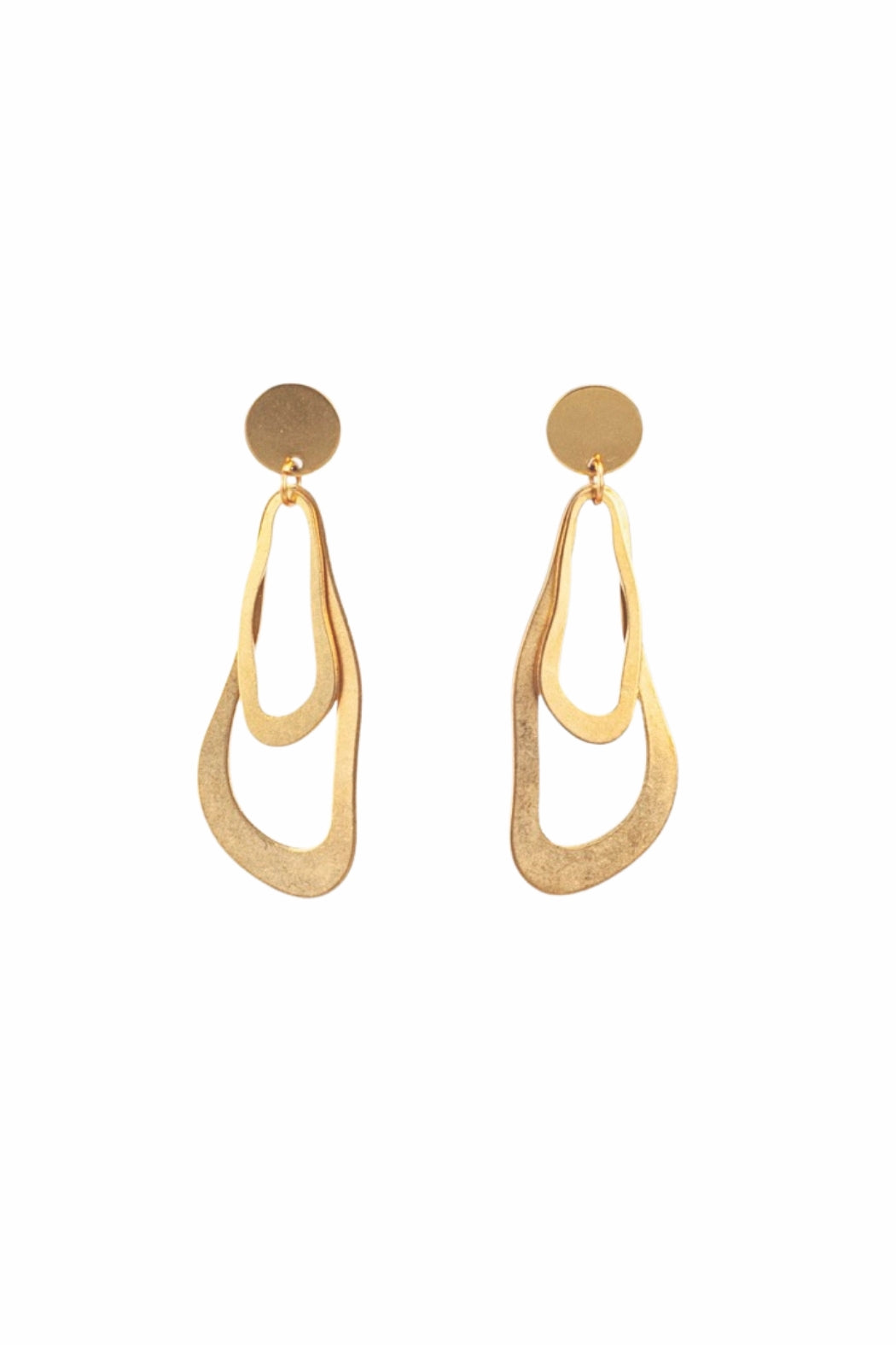 Stainless steel ear stud on brass circle. 2.5" H x .8" W.
