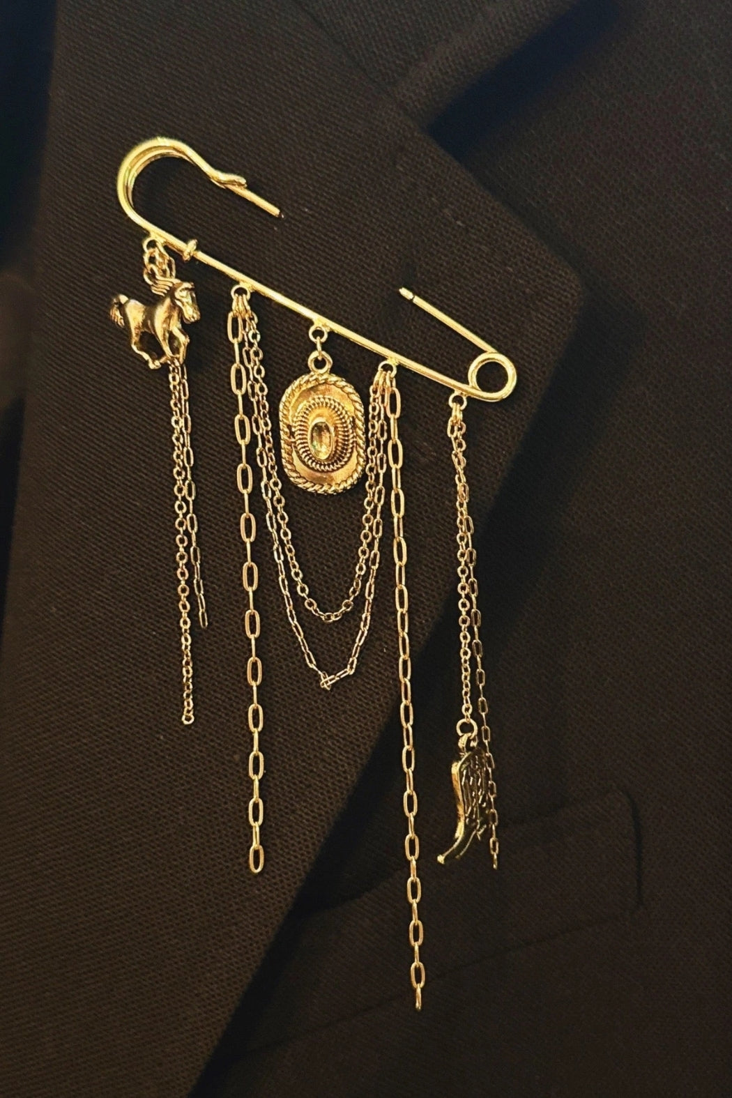Add a rustic flair to your look with the Western Charm Pin Brooch. Featuring a playful mix of western-inspired charms—like a cowboy boot, hat, and galloping horse—this pin brings a bold, adventurous touch to jackets, bags, or hats with a nod to classic cowboy style.
